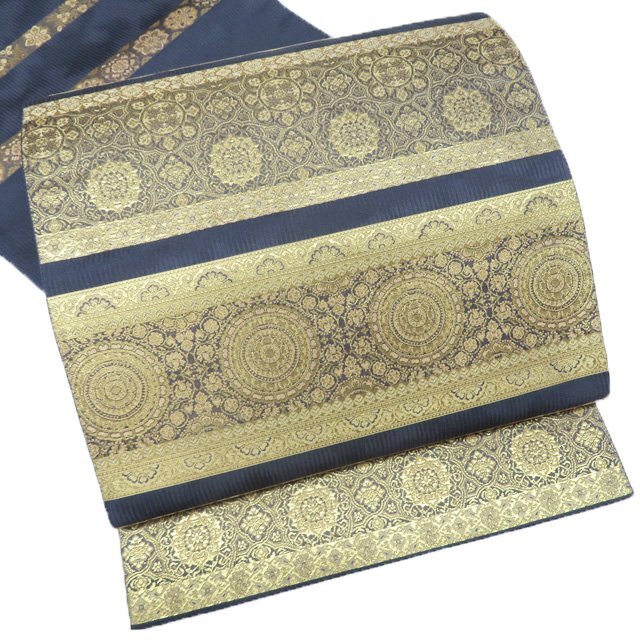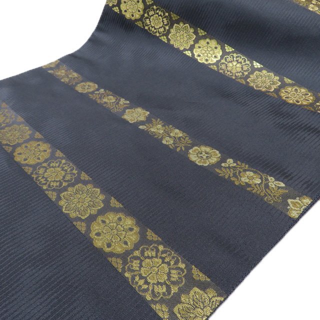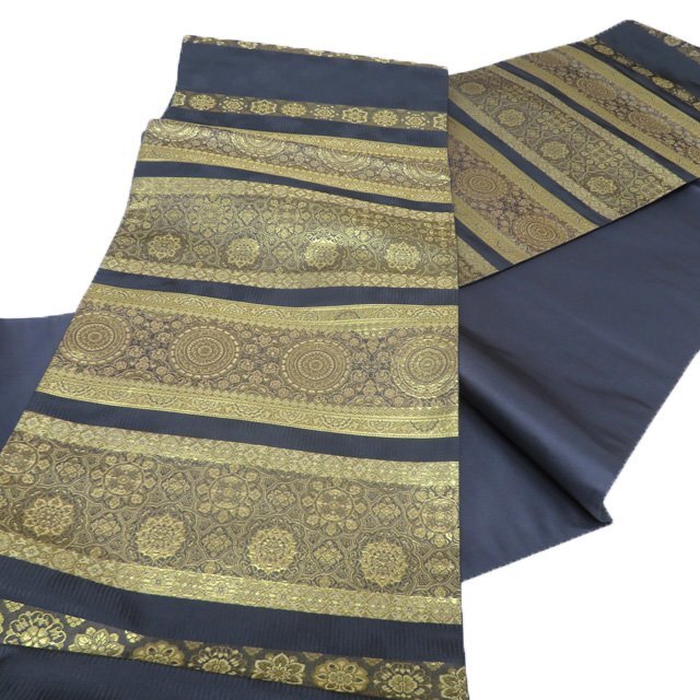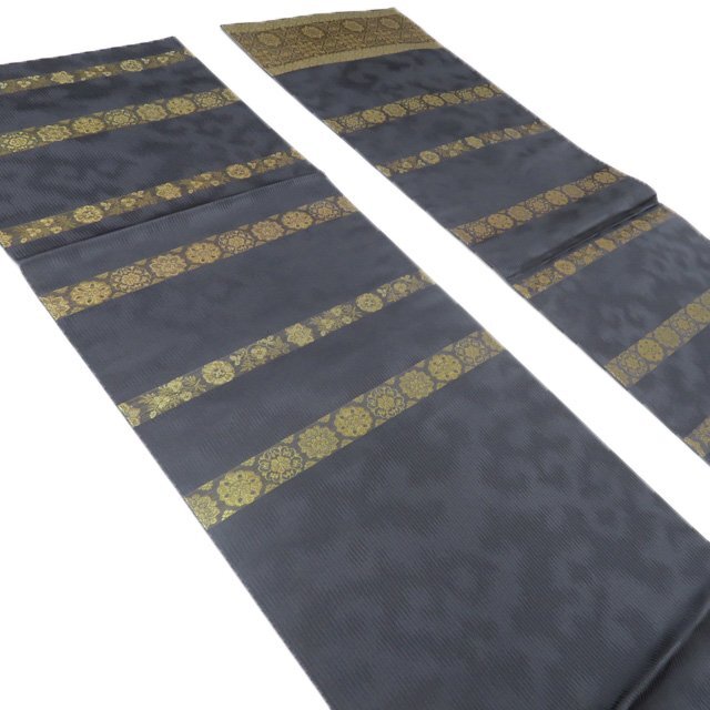 サイズ 444cm x 31cm 素材 正絹 商品ランク A お色 濃い鉛色 金 未使用の美しいお品物です。 一部商品は実店舗・他サイトでも並行して販売しておりますので売り切れの際はご了承ください。 その他多数販売中 n | ||||||