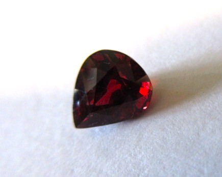 レッド系のロードライトガーネットです。暗赤色の中から、真っ赤なテリがキラキラしています。わかりにくいですが透明感もあります。非加熱。