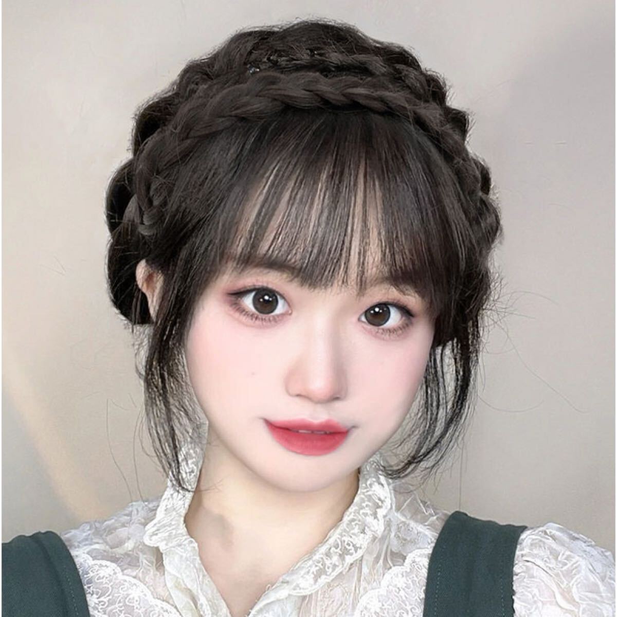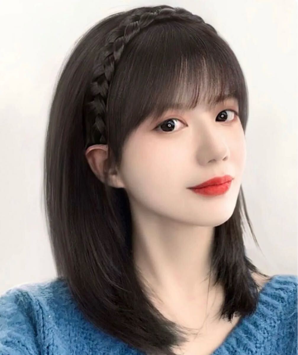 前髪が付いている、三つ編みカチューシャ