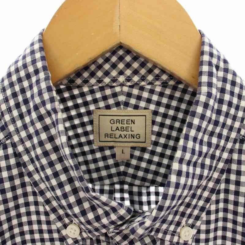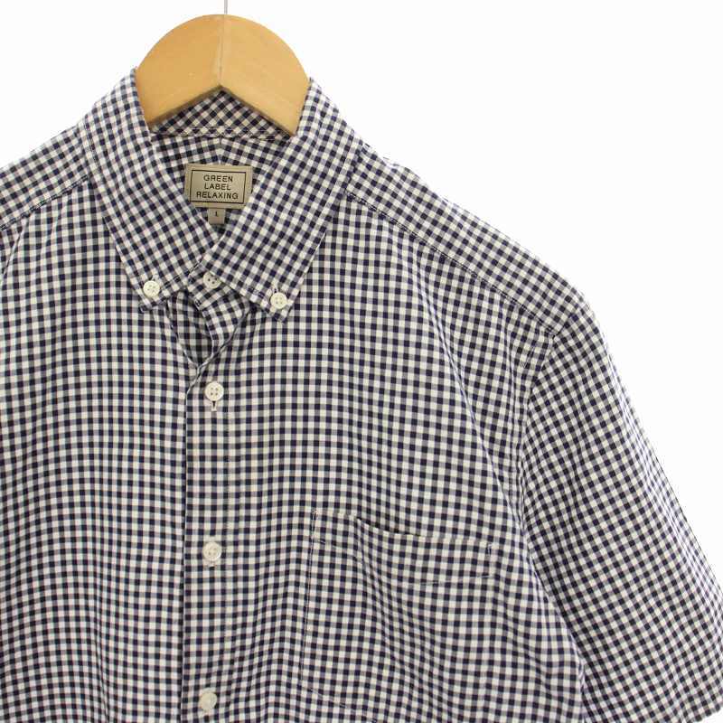 グリーンレーベルリラクシング ユナイテッドアローズ ボタンダウンシャツ カジュアルシャツ ギンガムチェック 半袖 L 紺