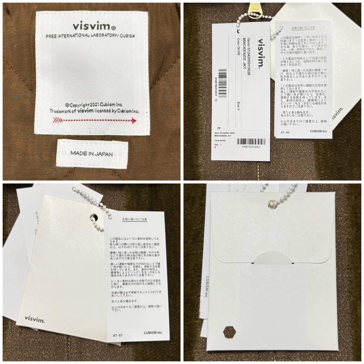 【極美品】 VISVIM ビズビム【MACKENZIE JKT】0124205013028 マッケンジー ジャケット サイズ:3 オリーブ
