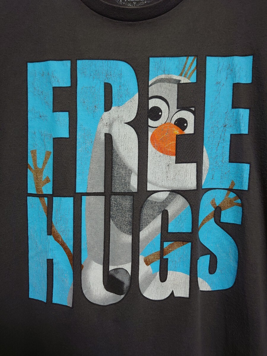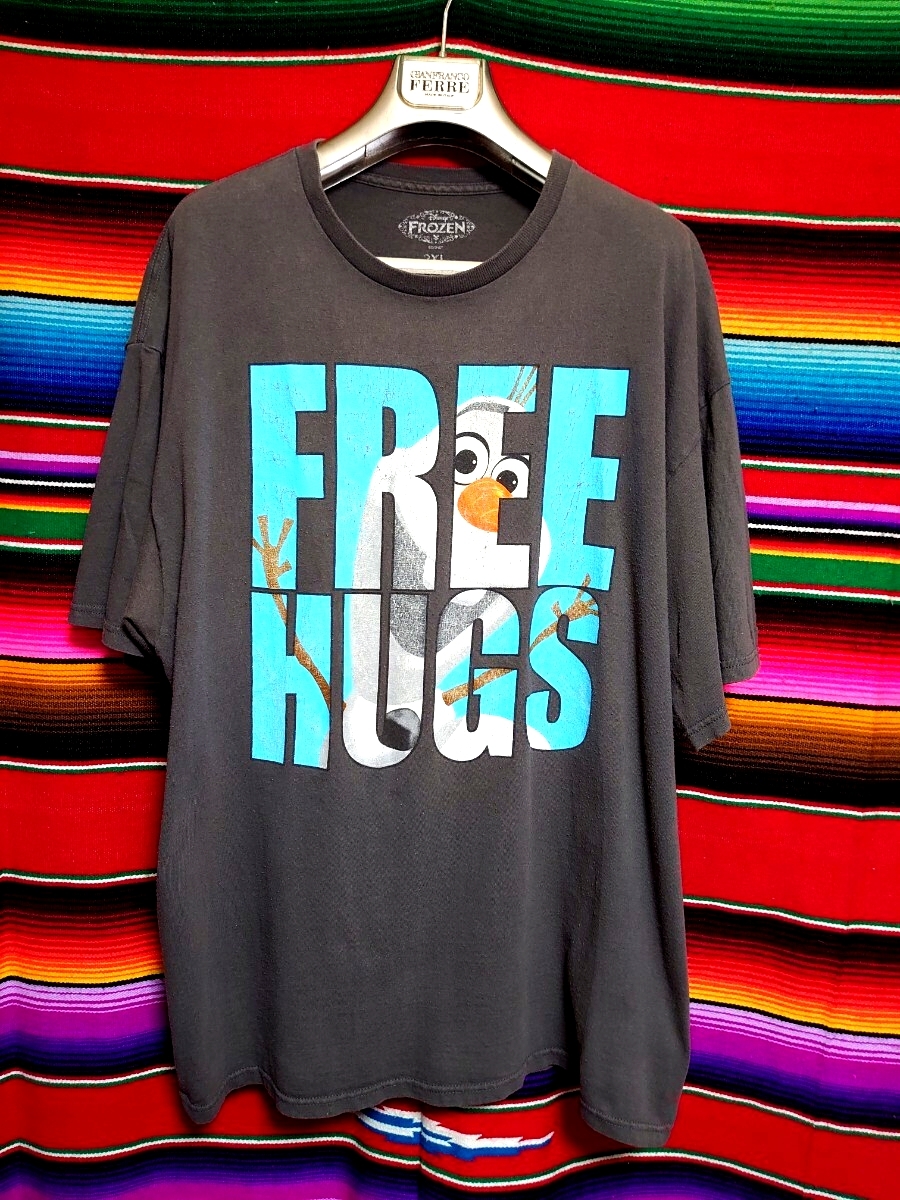 Walt Disney Worldオフィシャル ディズニー アナと雪の女王 オラフ フリーハグ キャラ プリントTシャツ 2XLサイズ チャコールグレー