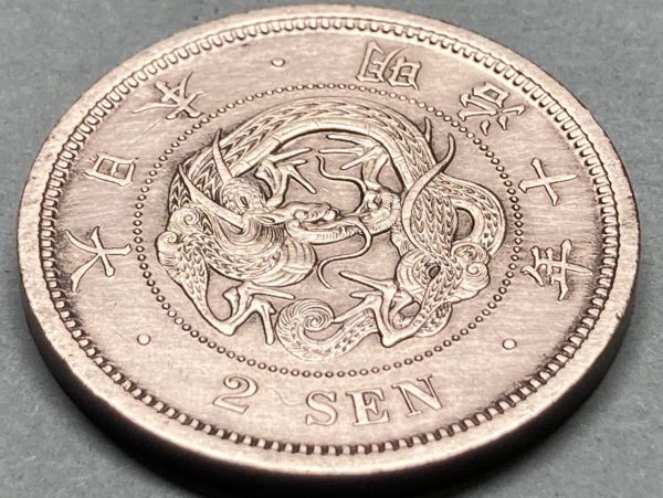 明治10年 竜2銭銅貨 波うろこ 磨き品 NO.0307