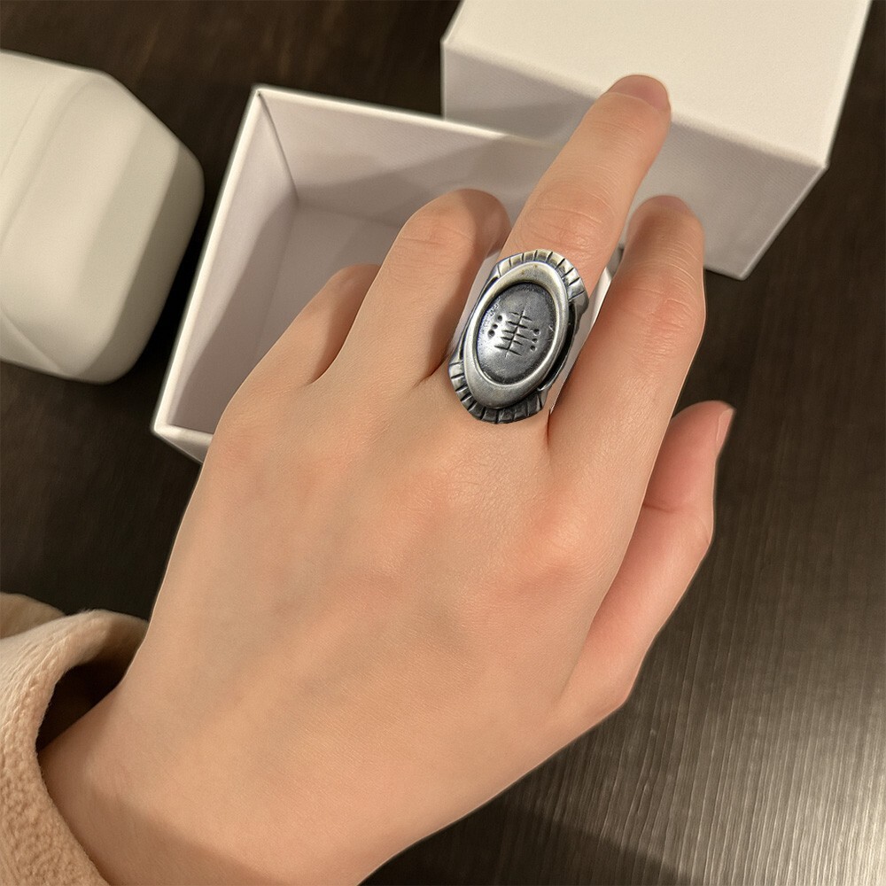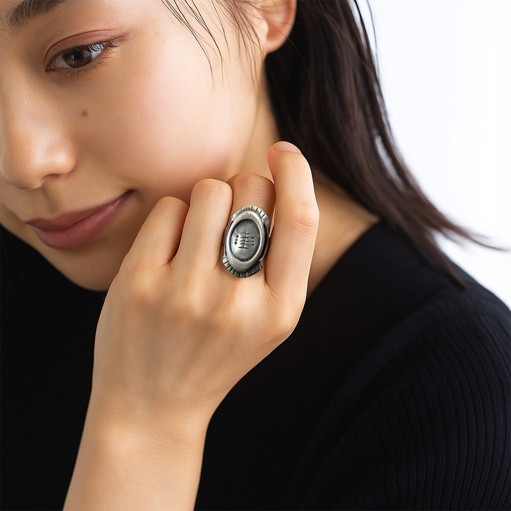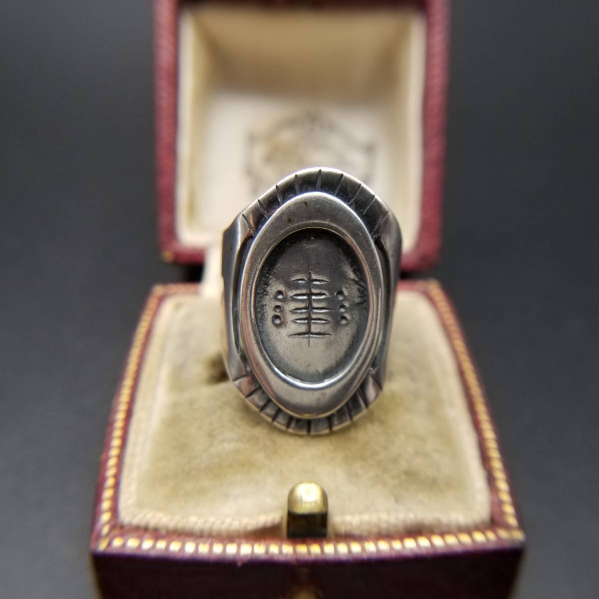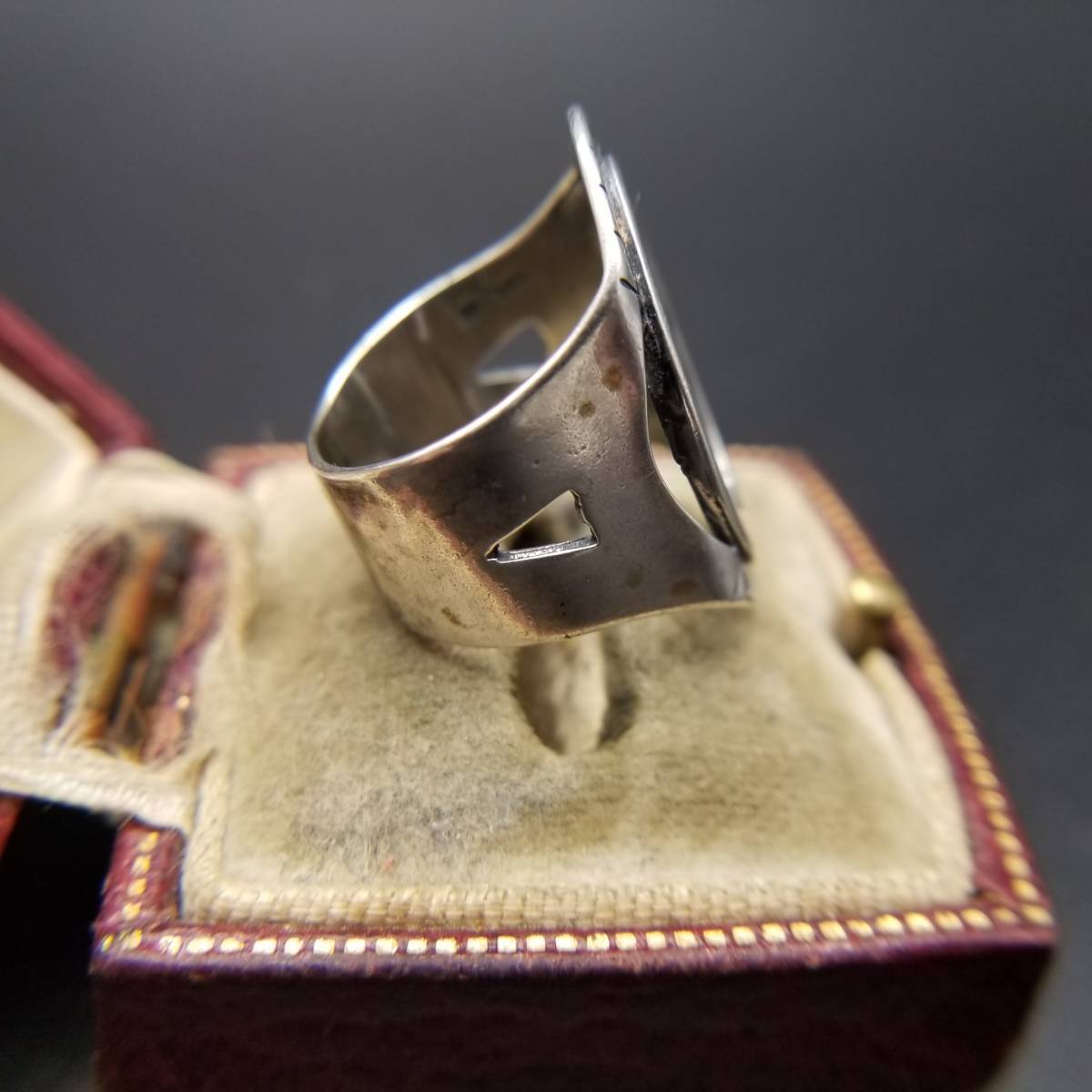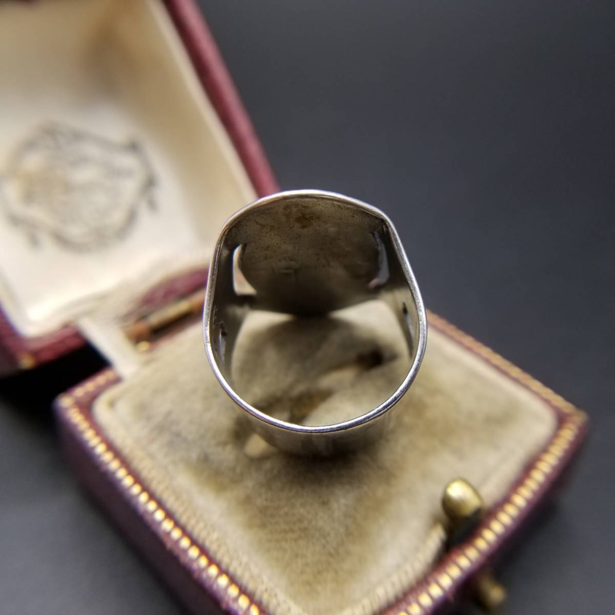 925 シルバー ヴィンテージ シールドリング オーバルカット 7g 指輪 ステートメントジュエリー 幅広バンド 個性派 Y11-I