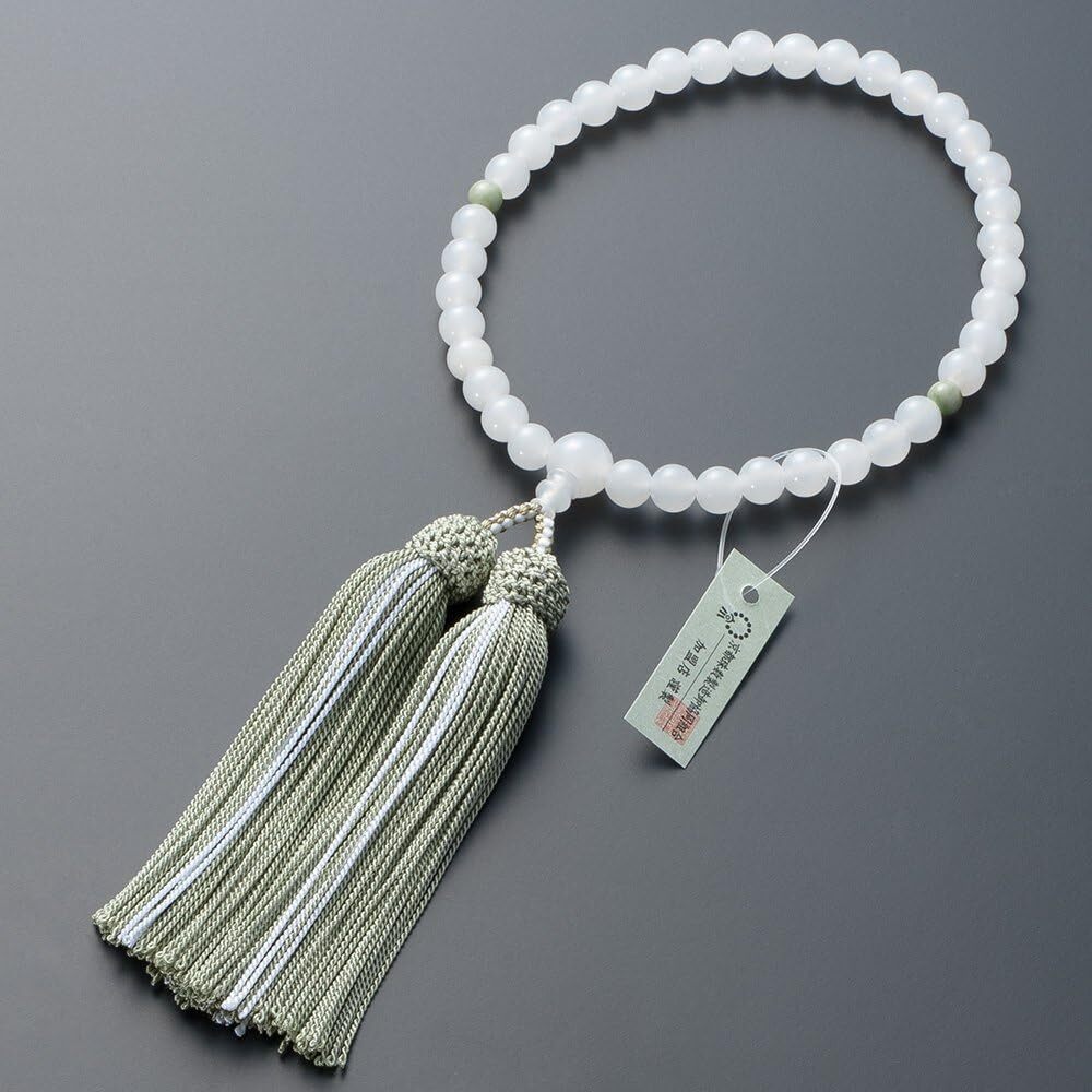 京念珠 数珠 女性用 白オニキス(7mm玉) 2天独山玉 正絹頭付房 数珠袋付 略式数珠