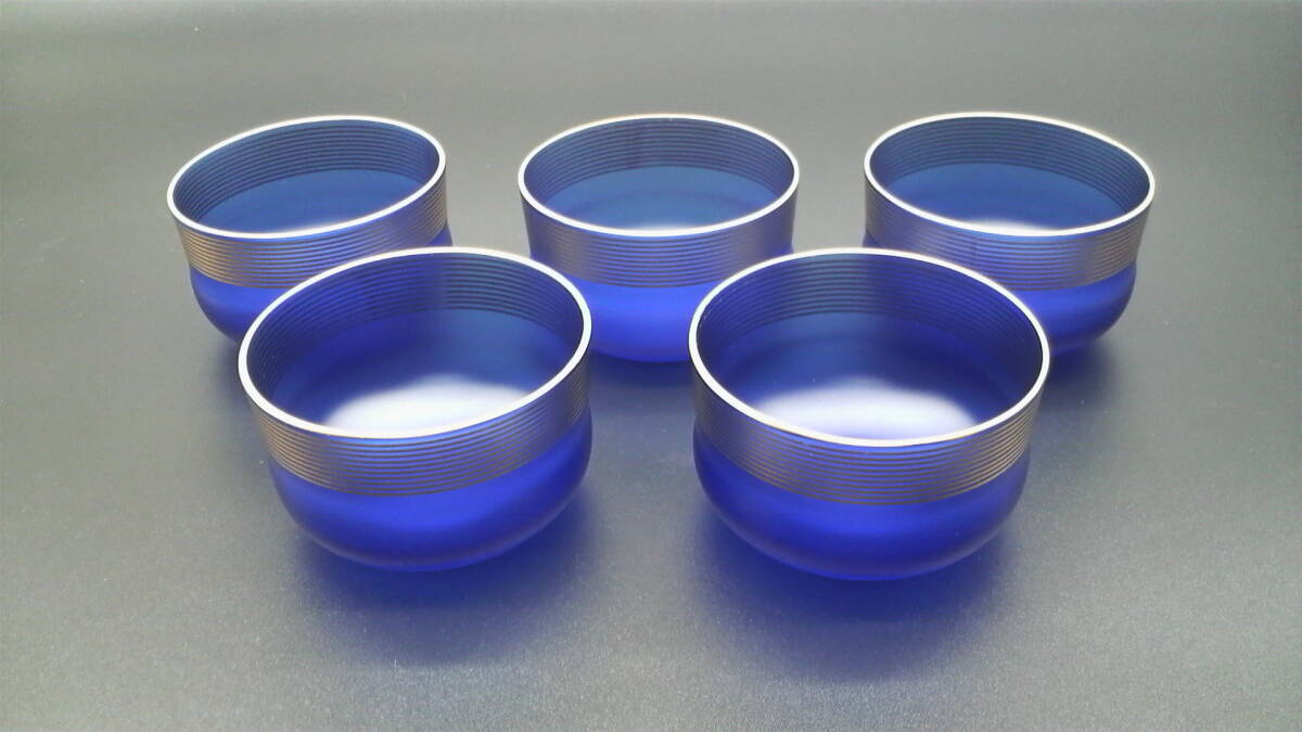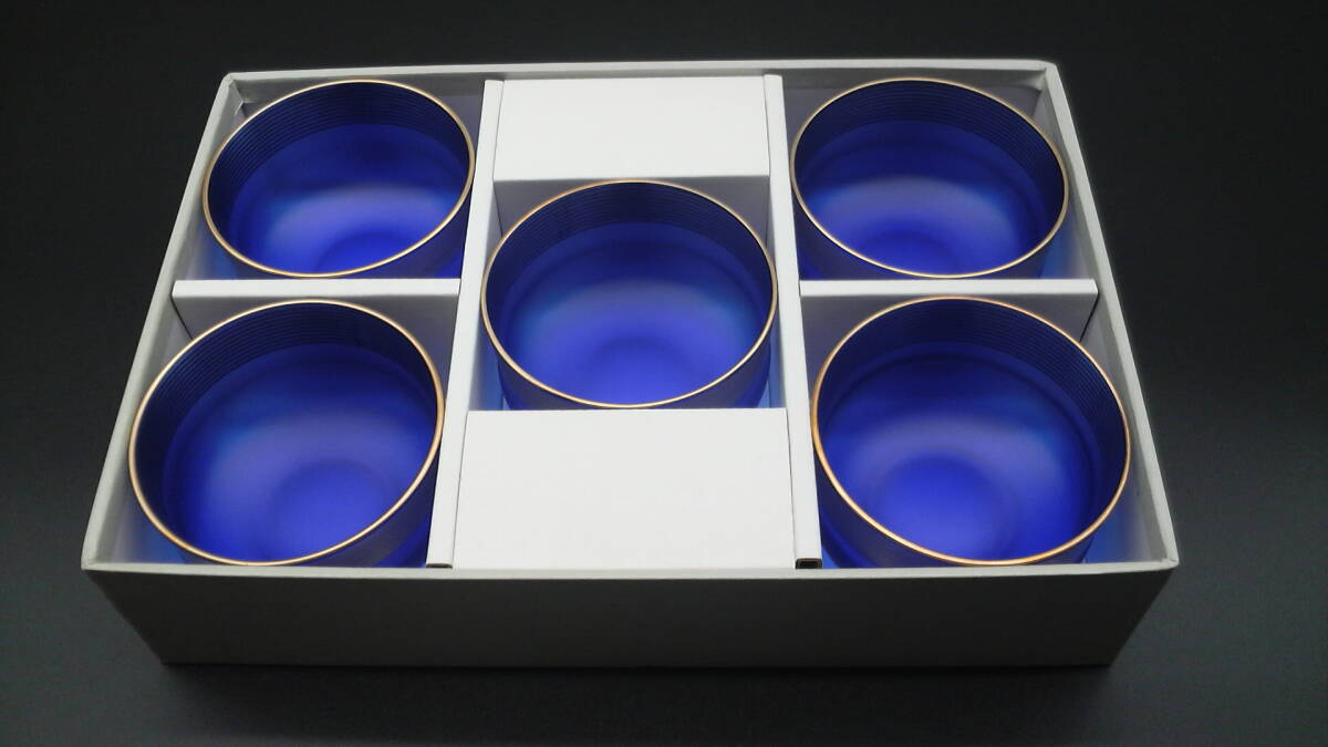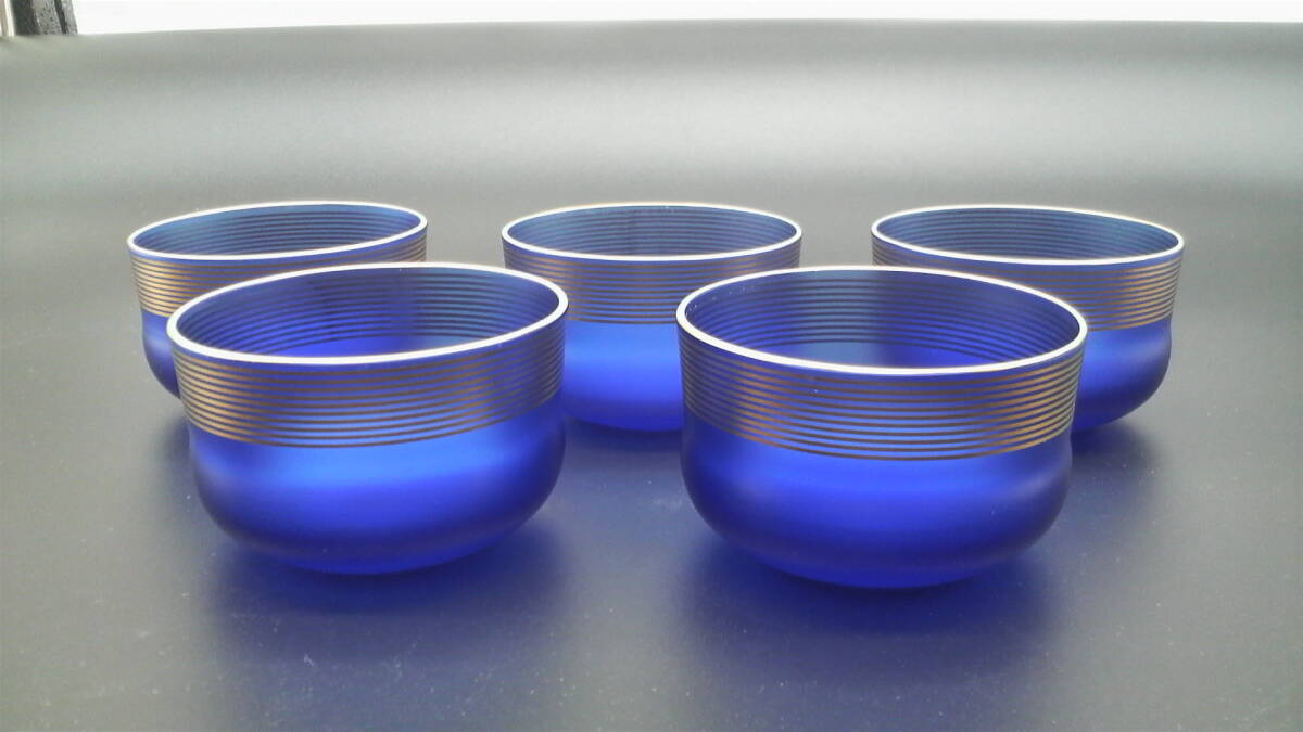 たち吉 青嵐 紫泉 金絵付(焼付) 青ガラス 5個セット