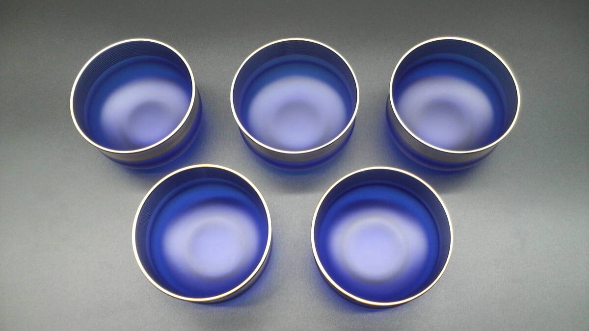 たち吉 青嵐 紫泉 金絵付(焼付) 青ガラス 5個セット