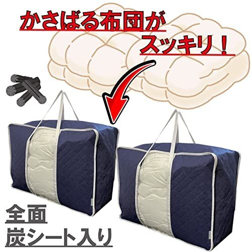 送料無料! 布団 活性炭 シングル~ダブルサイズ用 収納 シート入 藍色 収納 ケース イニコライフ 2枚組 全面 羽毛 シリー
