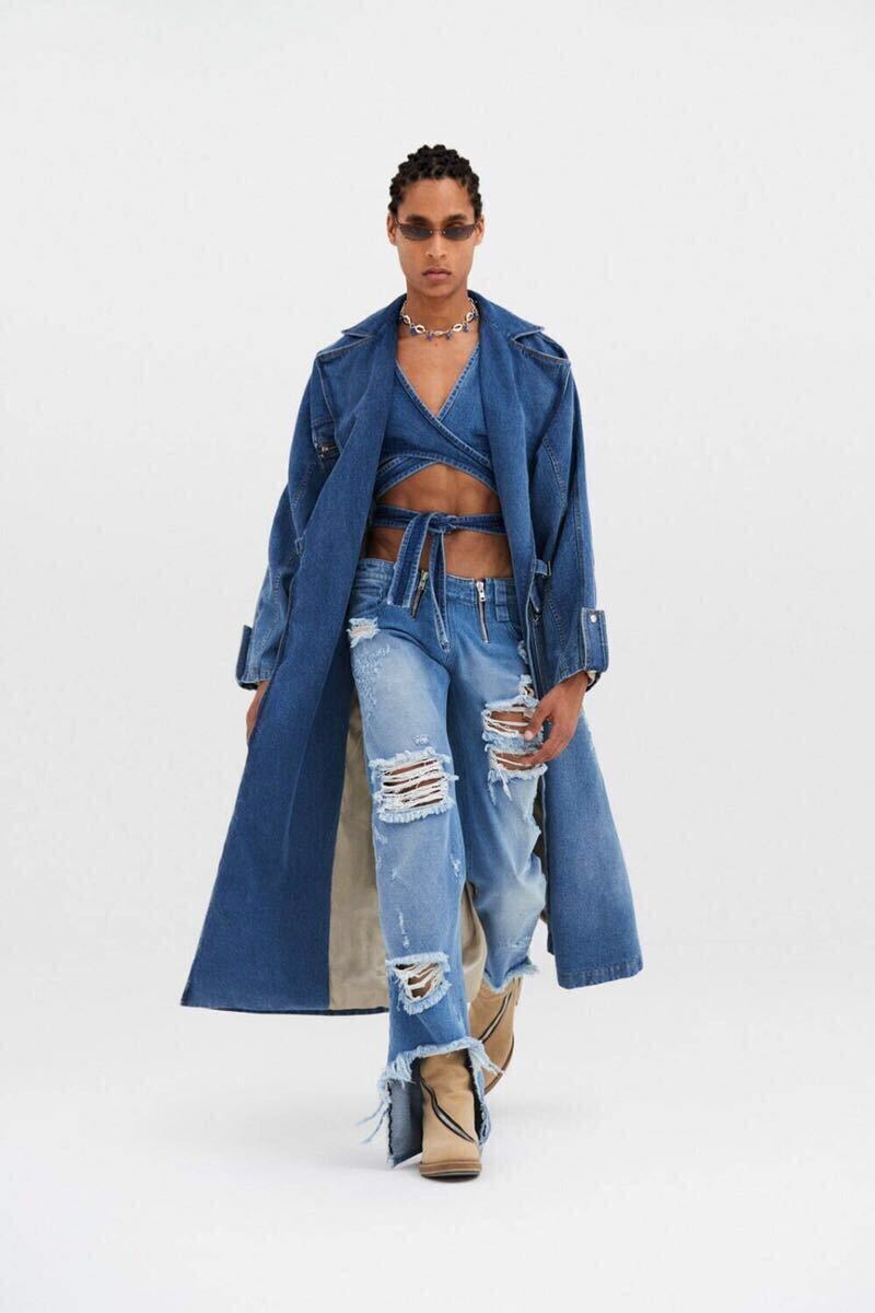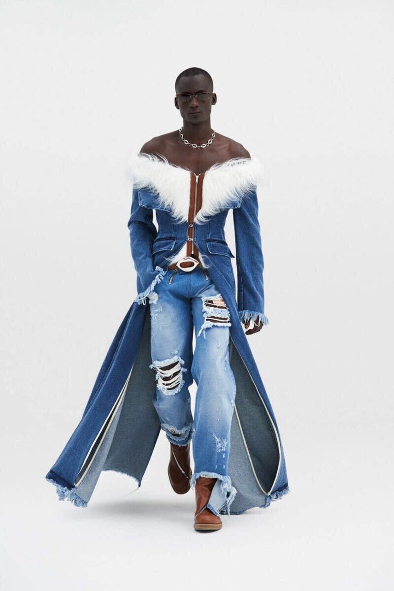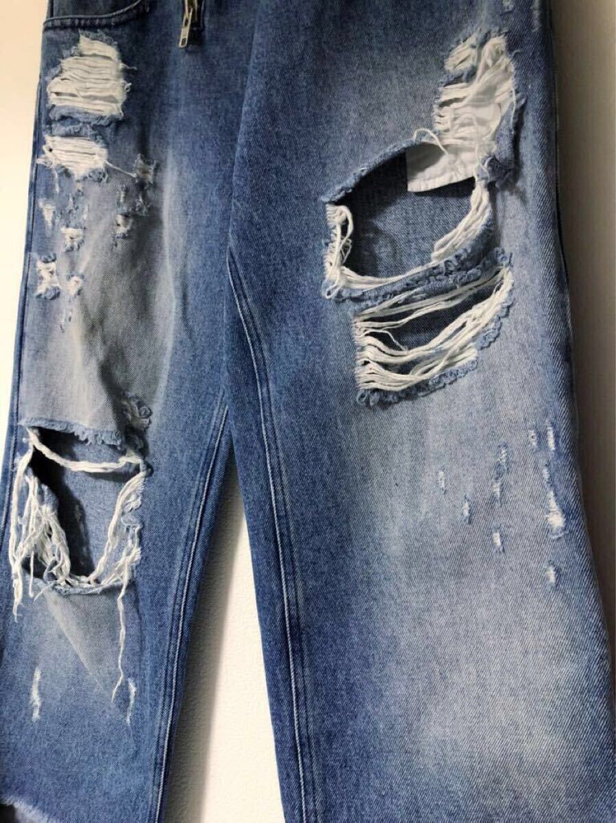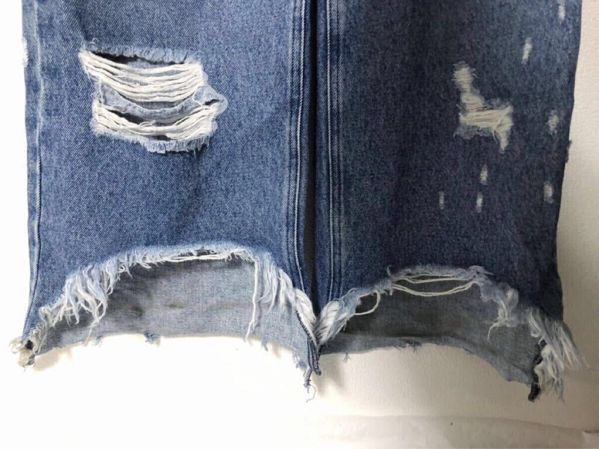 程よくルーズ+フレアなシルエットに、元々裾はカット仕様ですが前を極端にしたディテール、フロントダブルジップが特徴的なデニムです。