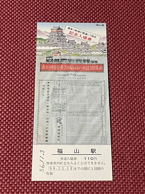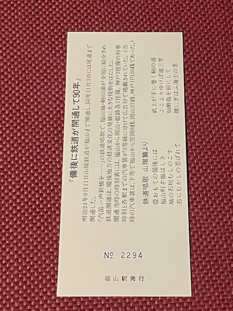 備後に鉄道が開通して90年 記念入場券 (管理番号29-65)
