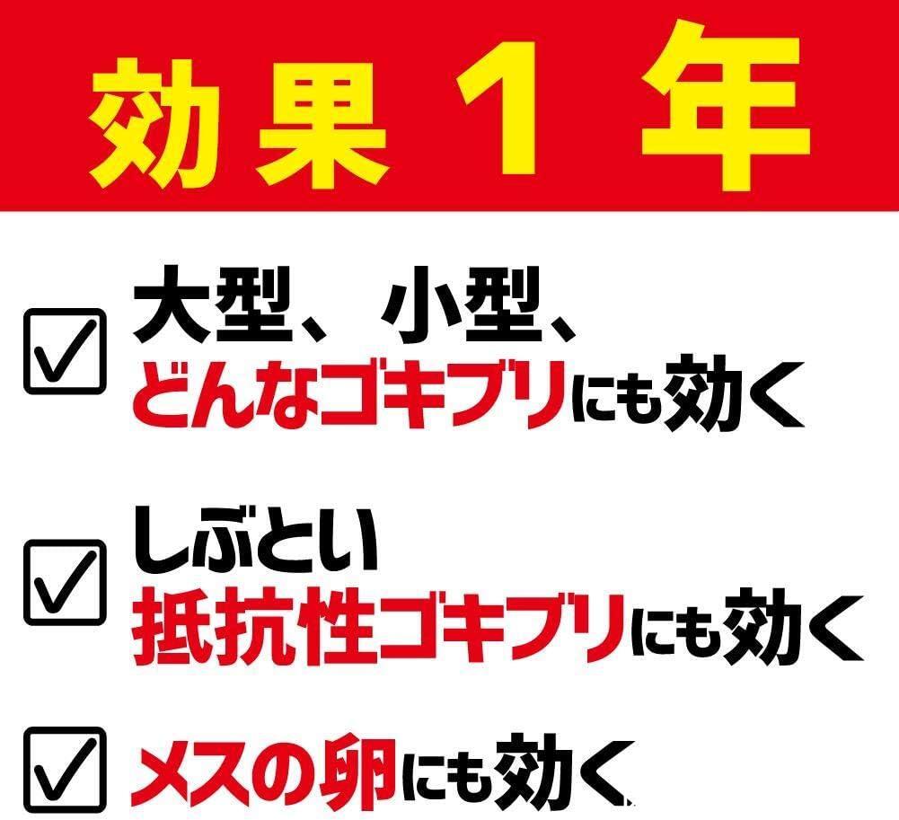 効き始めが早く、置いたその日から約1年間効果を発揮。やがてゴキブリがいなくなる!(※使用環境により効果は異なります。)