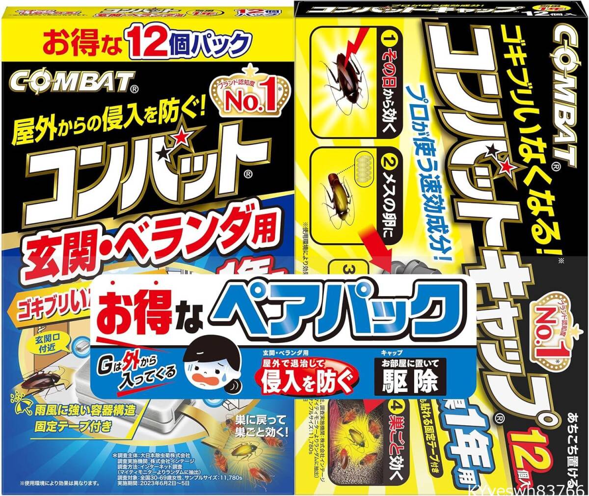 コンバット キャップ ゴキブリ 駆除剤 ブラック 容器 12個入 + 玄関・ベランダ用 12個入 ペアパック