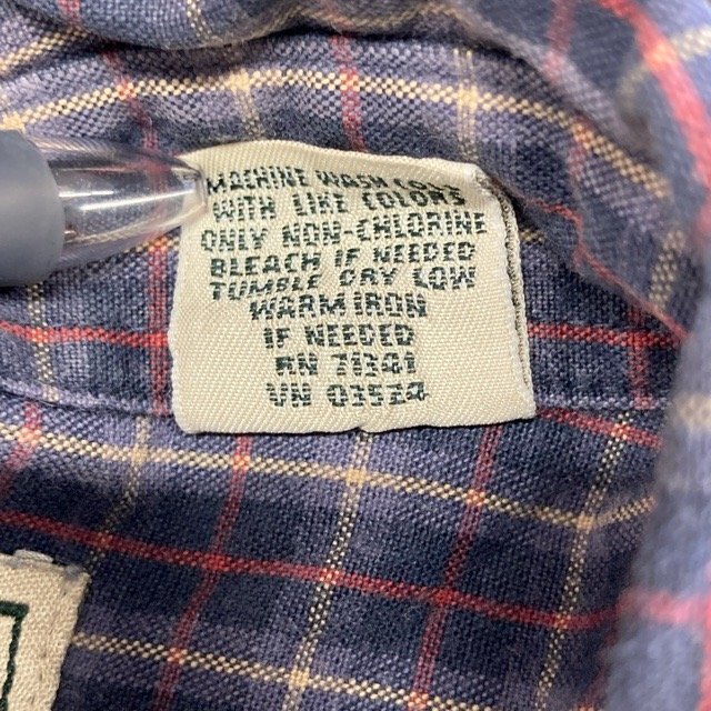 V136 エルエルビーン L アメリカ古着 チェック柄 ボタンダウン 長袖シャツ 胸ポケット L.L.Bean ネイビー系 メンズ