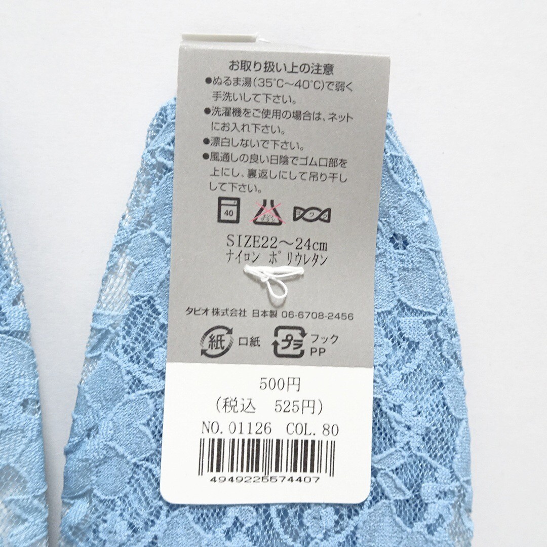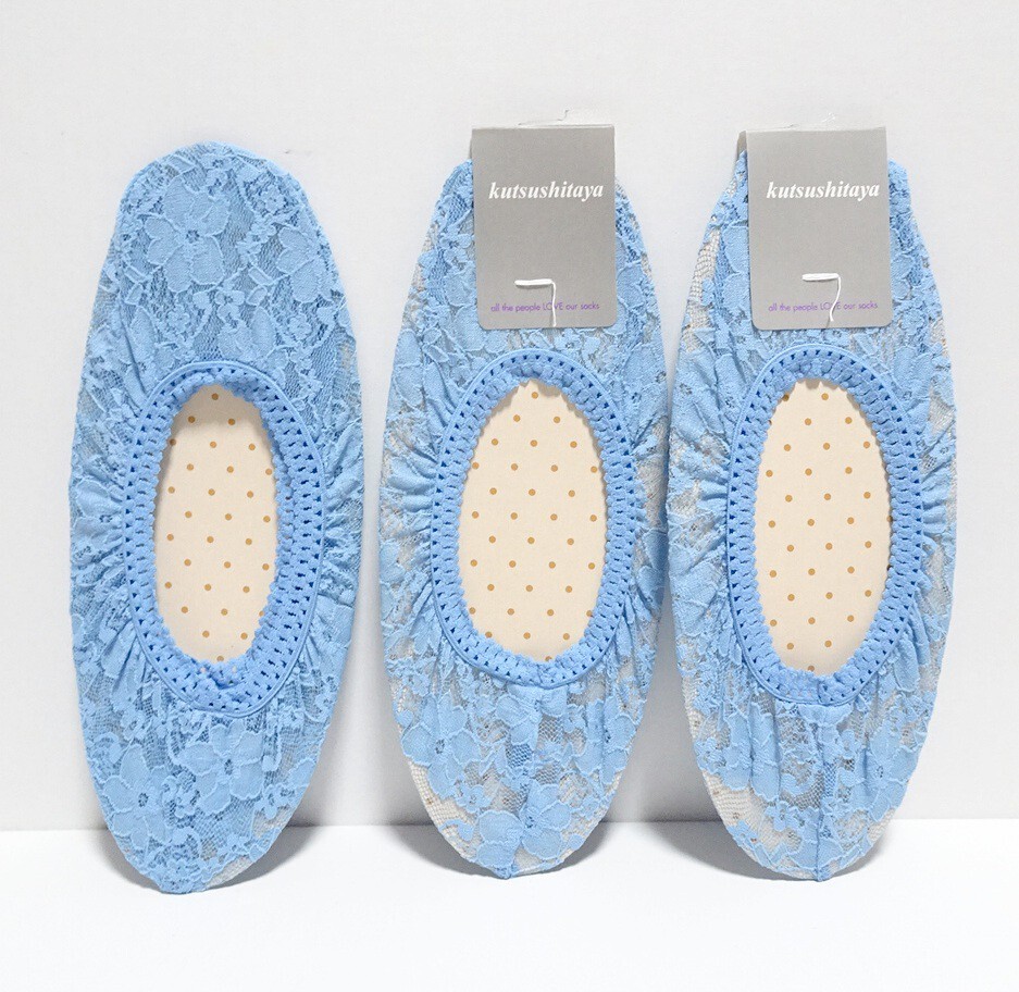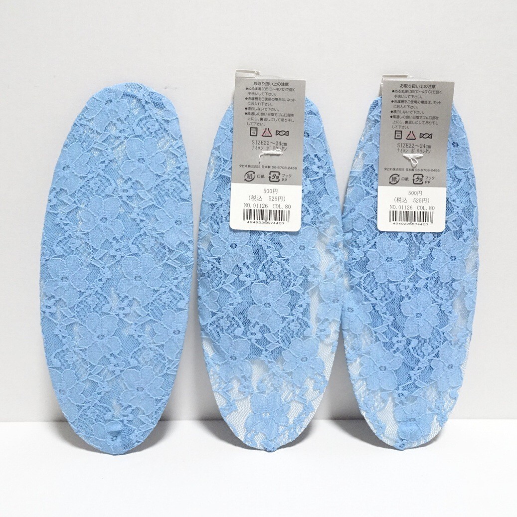 2461 送料無料 新品3点セット 靴下屋 カバーソックス 22〜24cm ブルー / フットカバー レディース ショートソックス レース 花柄