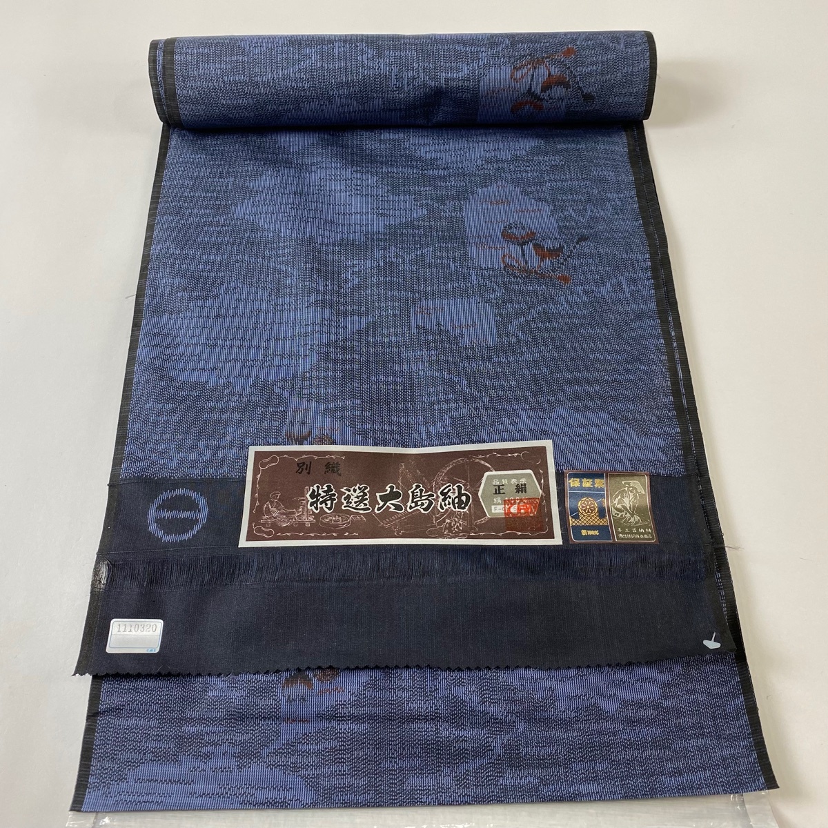 | 反物 秀品 紬 証紙 草花 青灰色 正絹 【中古】 |