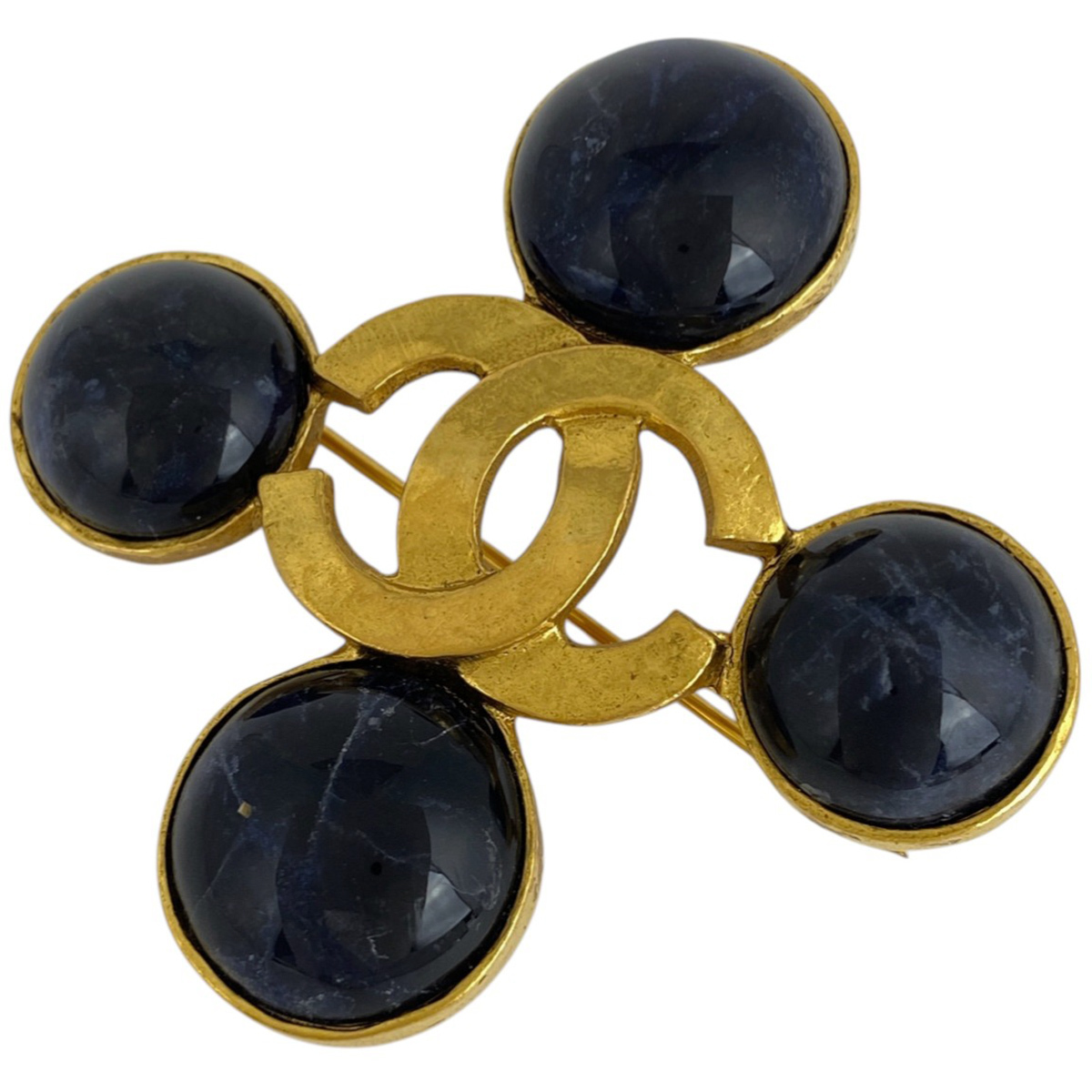 | シャネル CHANEL ココマーク カラーストーン ブローチ CCマーク グリポア ブローチ GP ゴールド ブルー レディース 【中古】 |