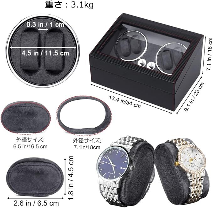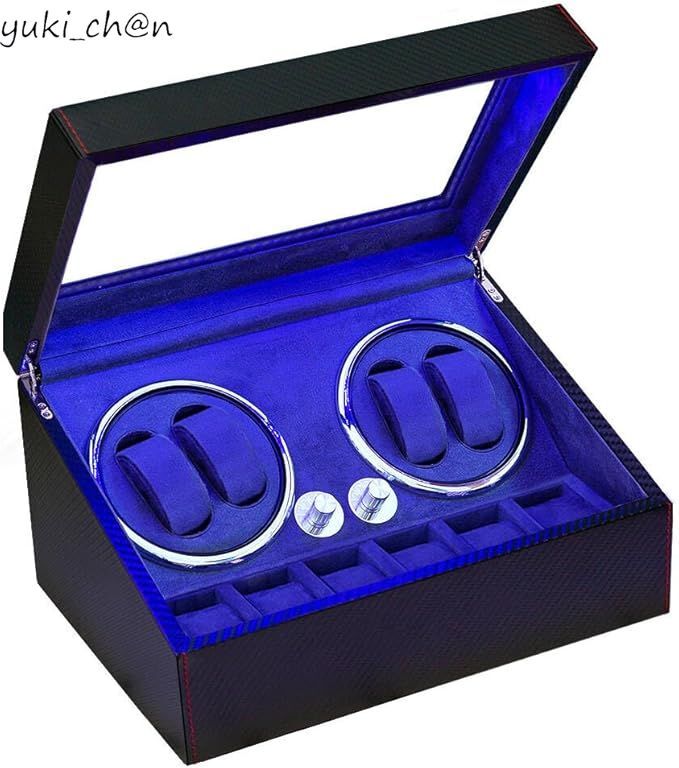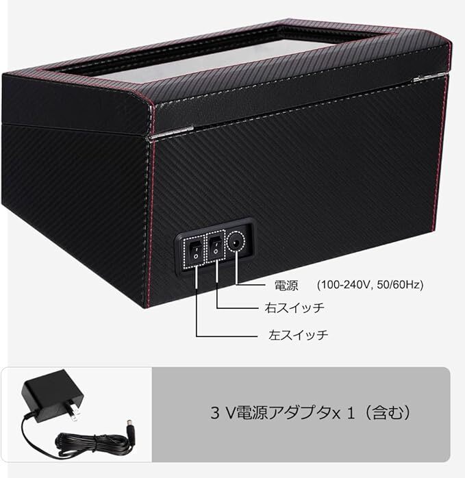 ワインディングマシーン 4本巻き+6本収納 ウォッチワインダー 自動巻き時計ワインディングマシーン マブチモーター ブラック+グレー4+6T