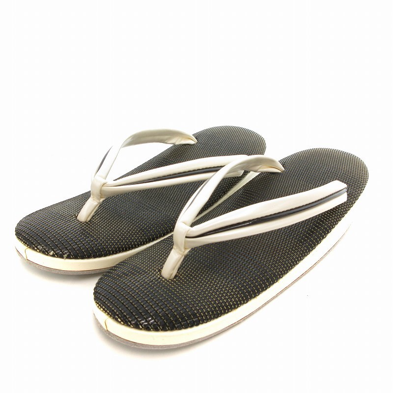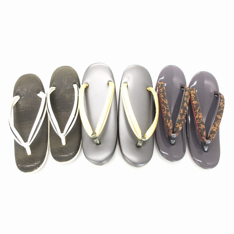 ノーブランド 3点セット 草履 下駄 シューズ 黒 ブラック 白 ホワイト /AE レディース