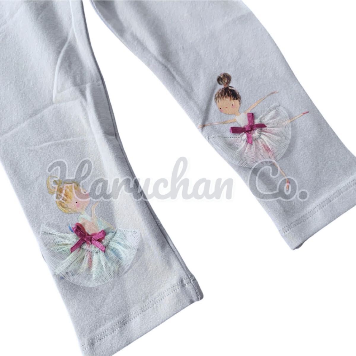 爽やかなライトブルーに裾のチュールスカートを履いたバレリーナがかわいいレギンス
