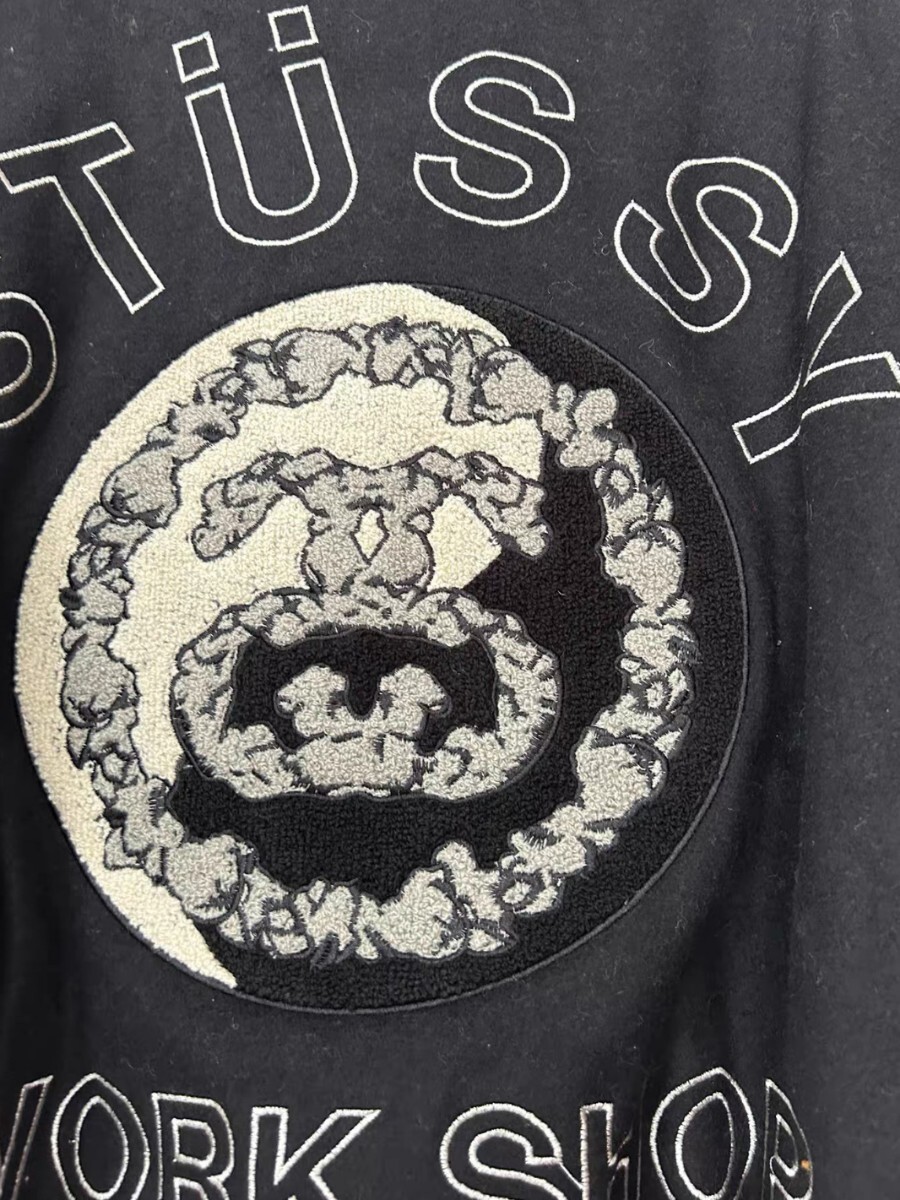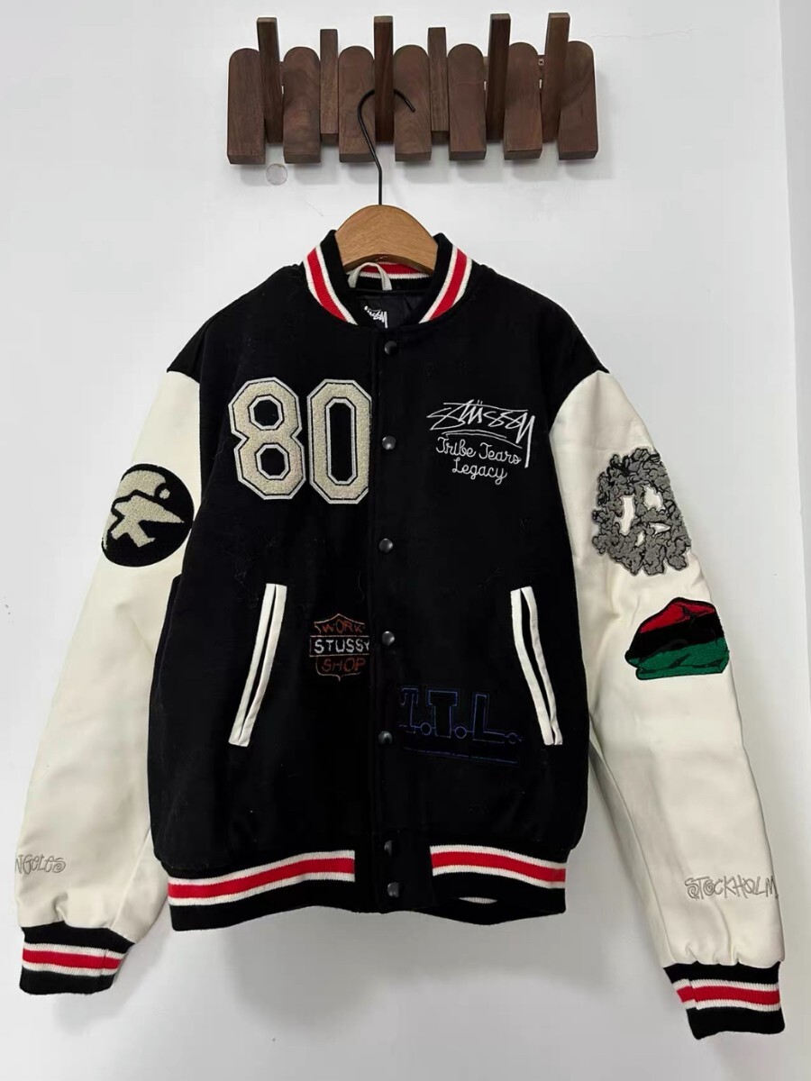 この「STUSSY × OUR LEGACY」スタジャンは、ストリートファッションとハイエンドデザインが融合した特別なコラボレーションアイテムです。