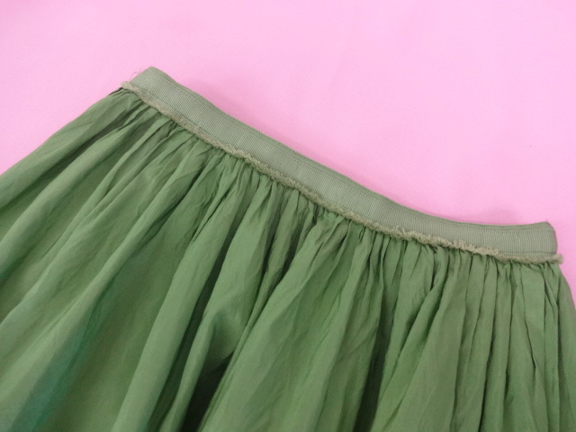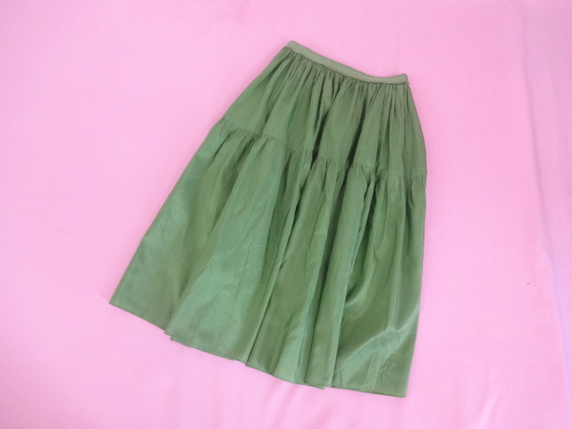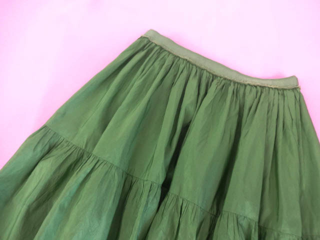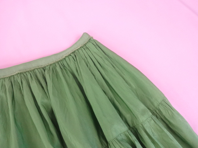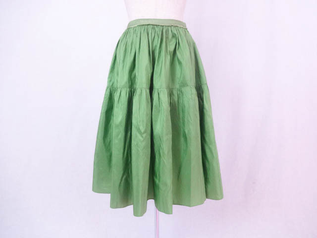 ADEAM アディアム シルク素材 ティアードふんわりスカート グリーン 38