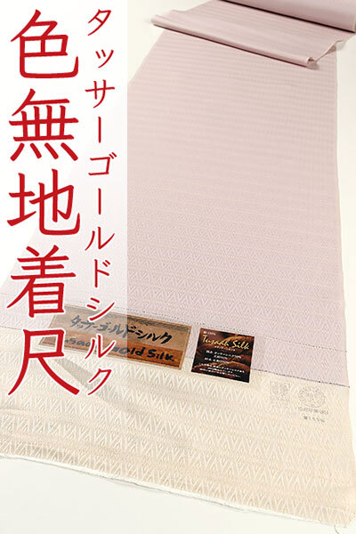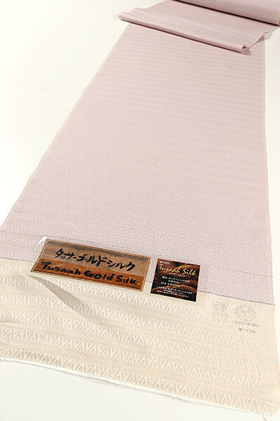 和遊館 即決kta2905 単衣 タッサーゴールドシルク 染め 紬 色無地 着尺 薄紫色 仕立て付き
