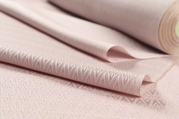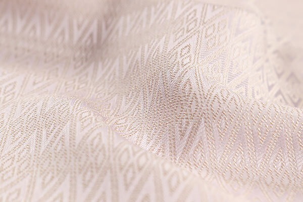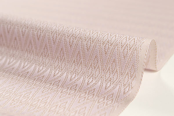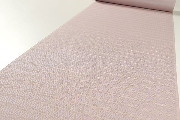 全体には、ゴールドシルクの糸で縦長の菱模様が織り上げられており、菱の一部が横段状に浮かび上がっております。