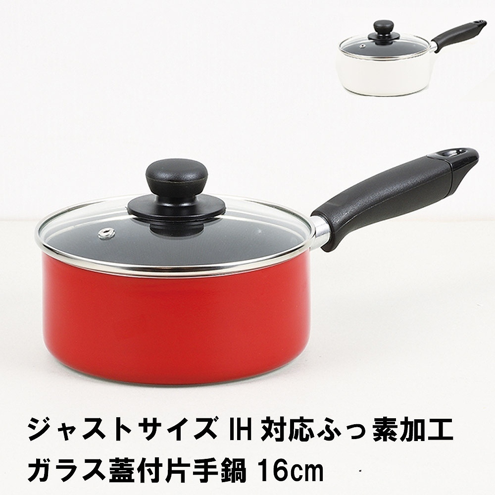 商品説明 | 【仕様】 ▼ 備考 ▼ カラー レッド,ホワイト ▼ キーワード 片手鍋 16cm IH対応 ふっ素加工 ガラス蓋付 ジャストサイズ |