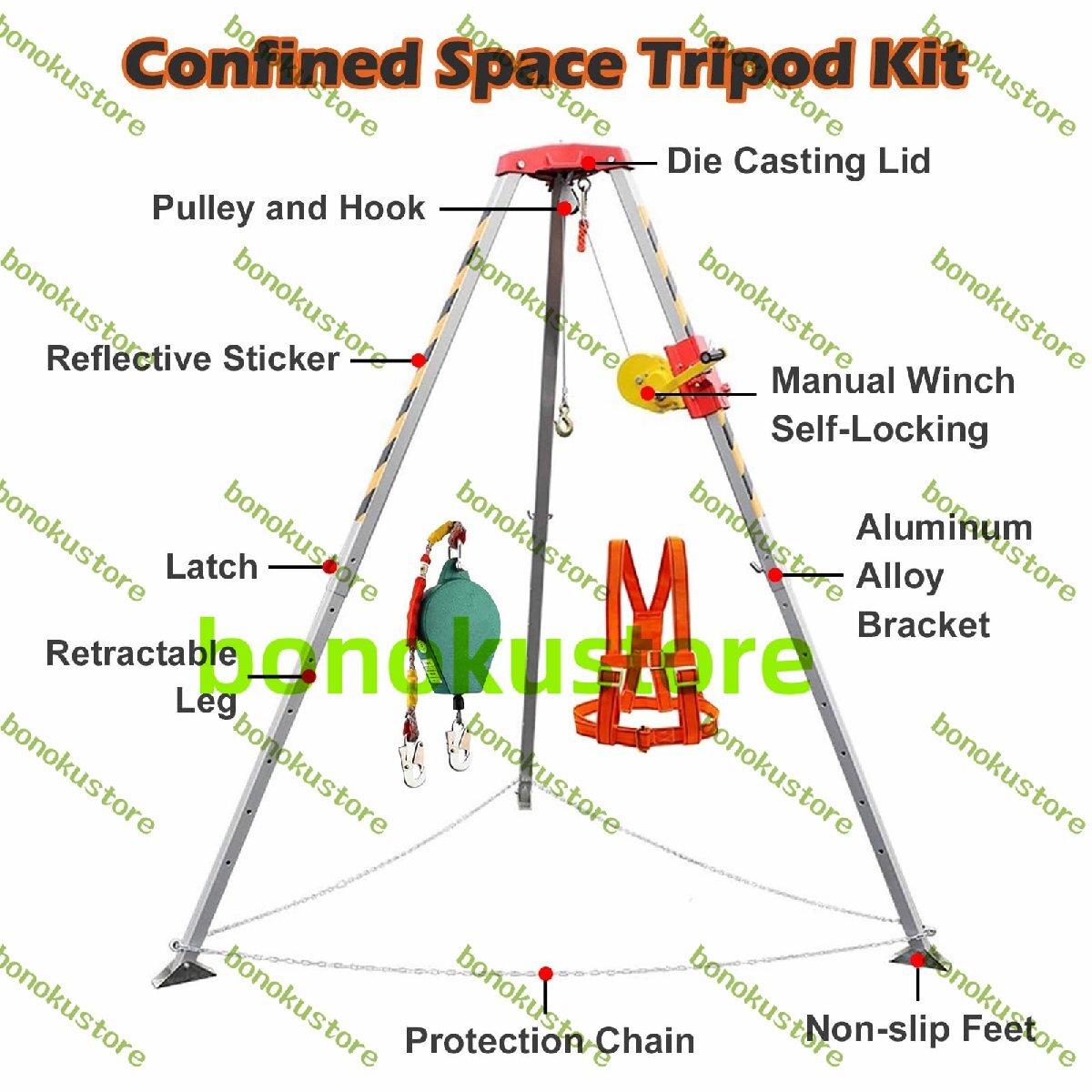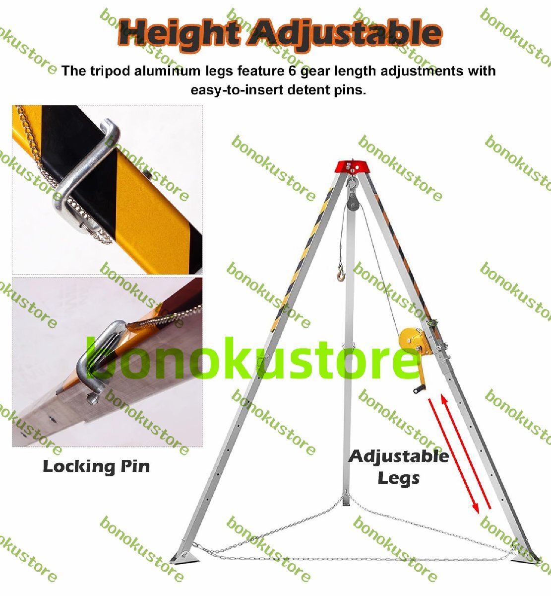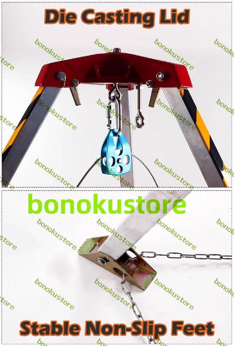 ?? さまざまな用途 --- 三脚ホイストは、井戸、下水道、地下室、ケーブル溝、ピット、消防、マンホール、地下パイプ、煙道、トンネルなどの限られたスペースへの進入に適しています。坑口探査、電力工学、トンネル掘削、緊急救助に最適です。