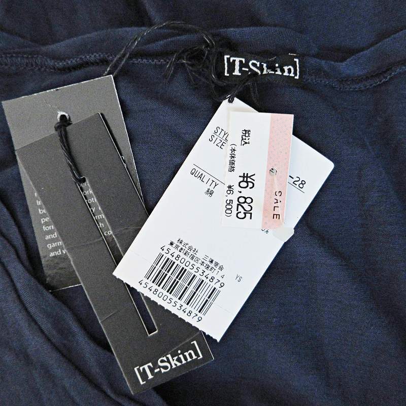 未使用品 T-Skin ティースキン タグ付き Tシャツ カットソー 半袖 Vネック M 紺 ネイビー 0723 ●ECO メンズ
