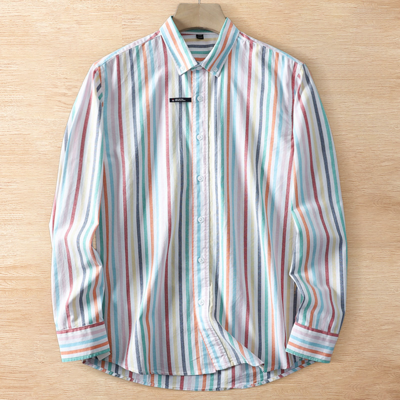 A5801-3XL 新品 綿100% ウォッシュ カラーストライプ オックスフォード 長袖シャツ メンズ  ボタンダウン 春秋 レギュラーカラー カジュアル トップス