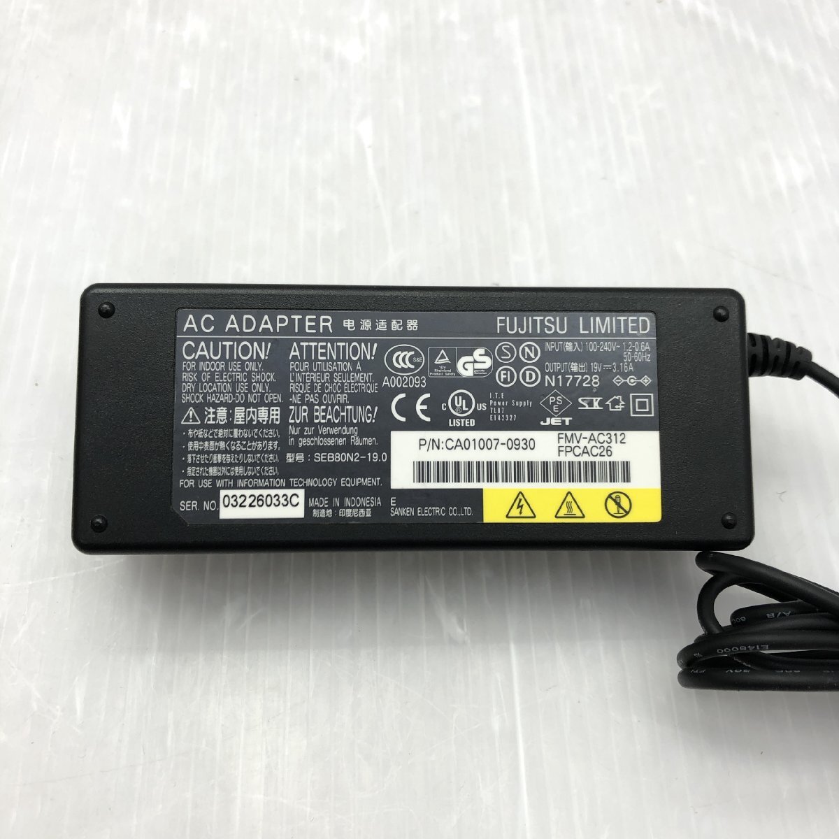 | 商品と付属品について | 型番:FMV-AC319・FMV-AC312・FMV-AC320C (上記内の型番商品が入っています) 個数:9個 付属ケーブル:ー 出力:100V-240V 入力:19V 3.16A ※簡易清掃のみとなっております。傷や汚れ等はございますのでご了承ください。 ※商品状態につきましては、錆・通常使用に問題の無い被膜破れがある場合がございます。 ※適応機種につきましてお客様にてご確認お願い致します。 ※動作不良や充電不可などの初期不良を除き、お客様のご都合による返品はご遠慮いただいております。 |