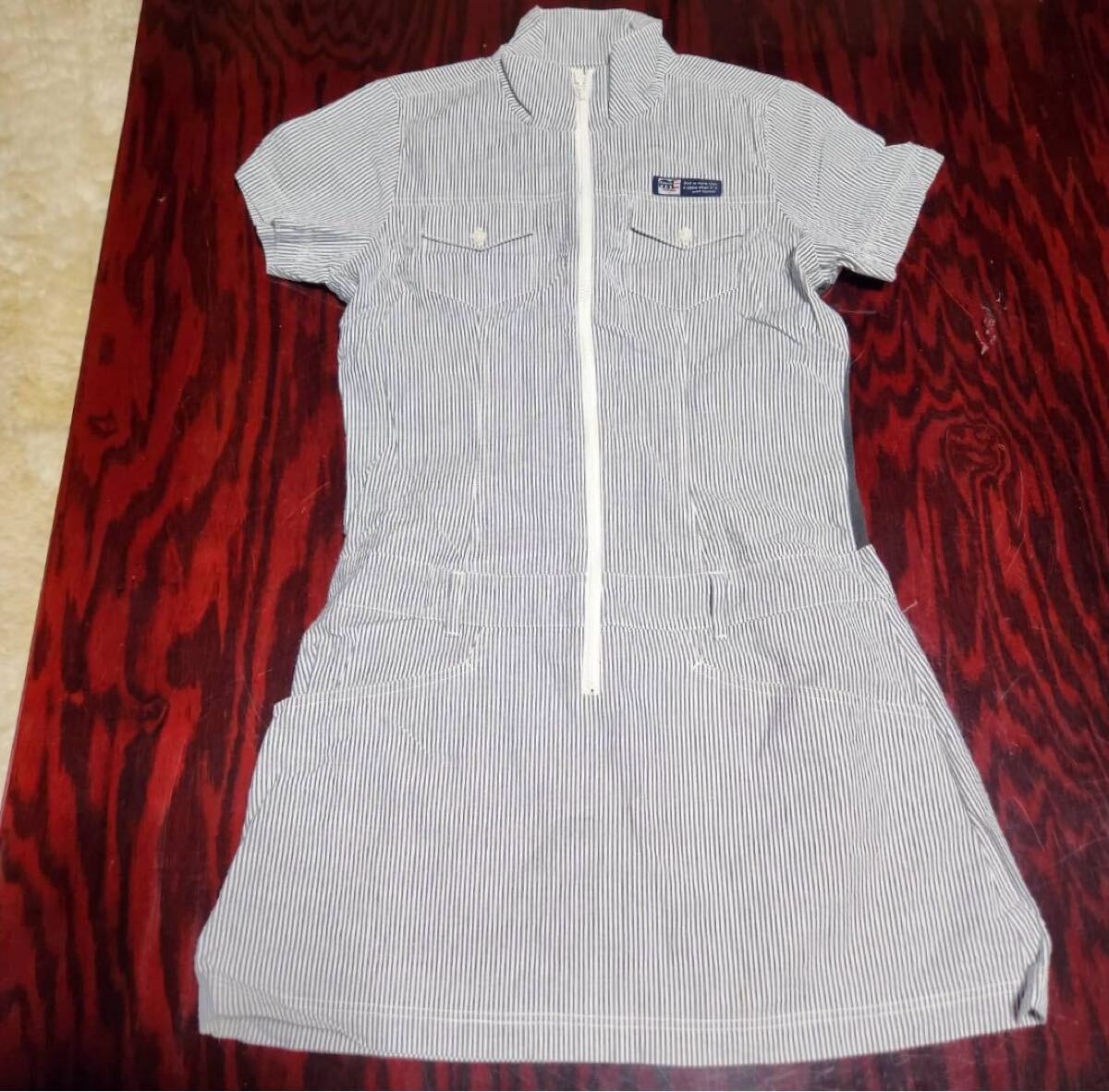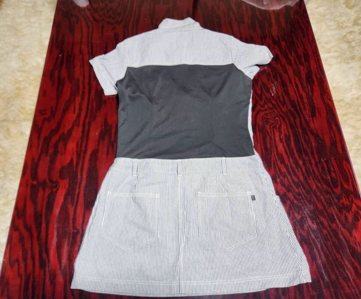 ゴルフウェア 半袖ワンピース ストライプ柄
