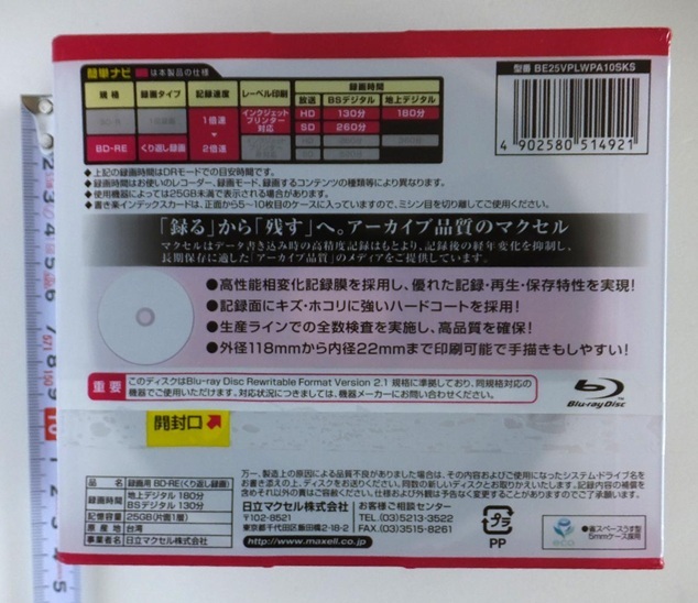 | 商品説明 | maxell(マクセル) 録画用BD?RE BE25VPLWPA10SKS くり返し録画用 ハードコート パッケージに一部破れがあります、画像で確認お願いいたします。 未開封です 家庭での保管品です。 気になる方は、入札ご遠慮ください。 整理番号 25214 |
