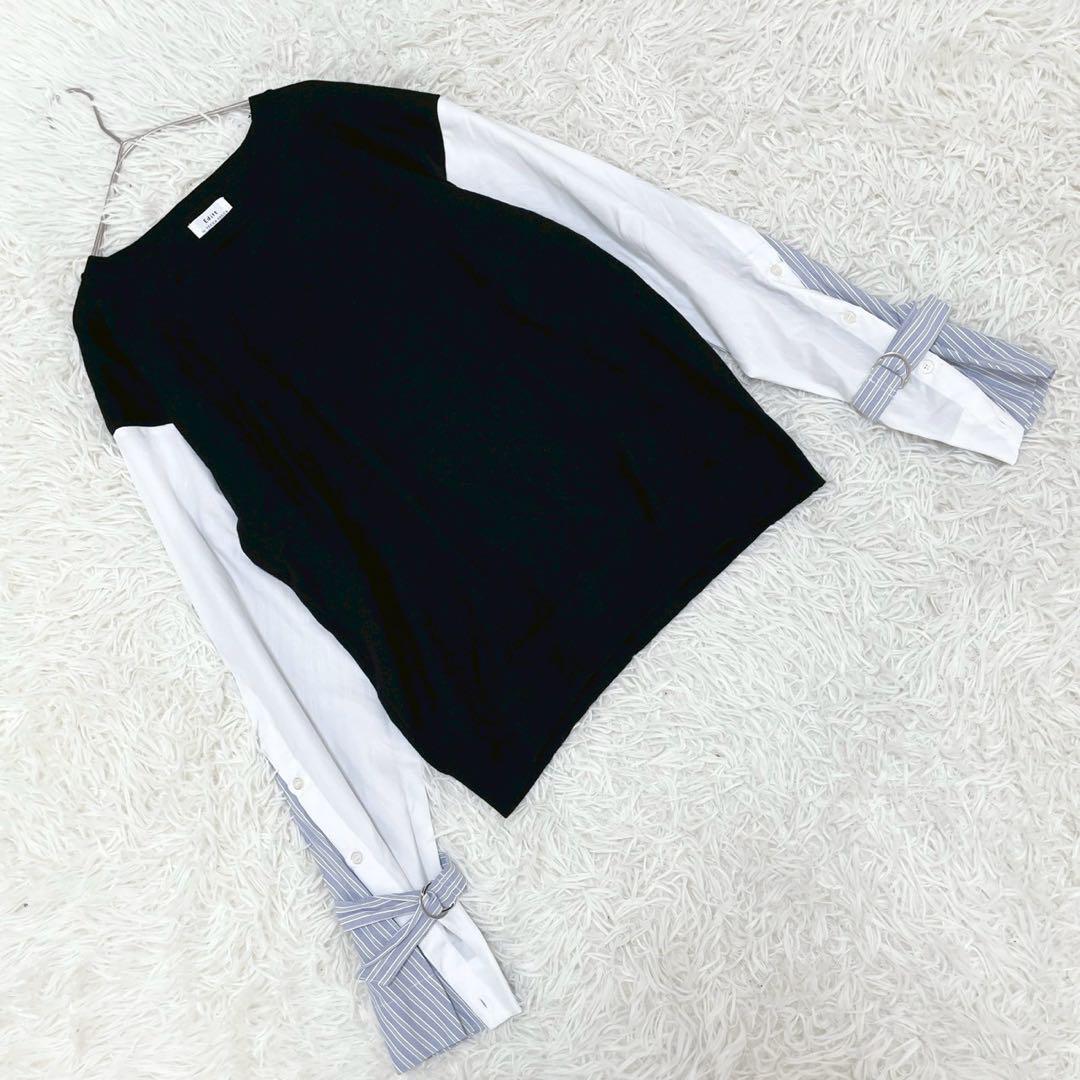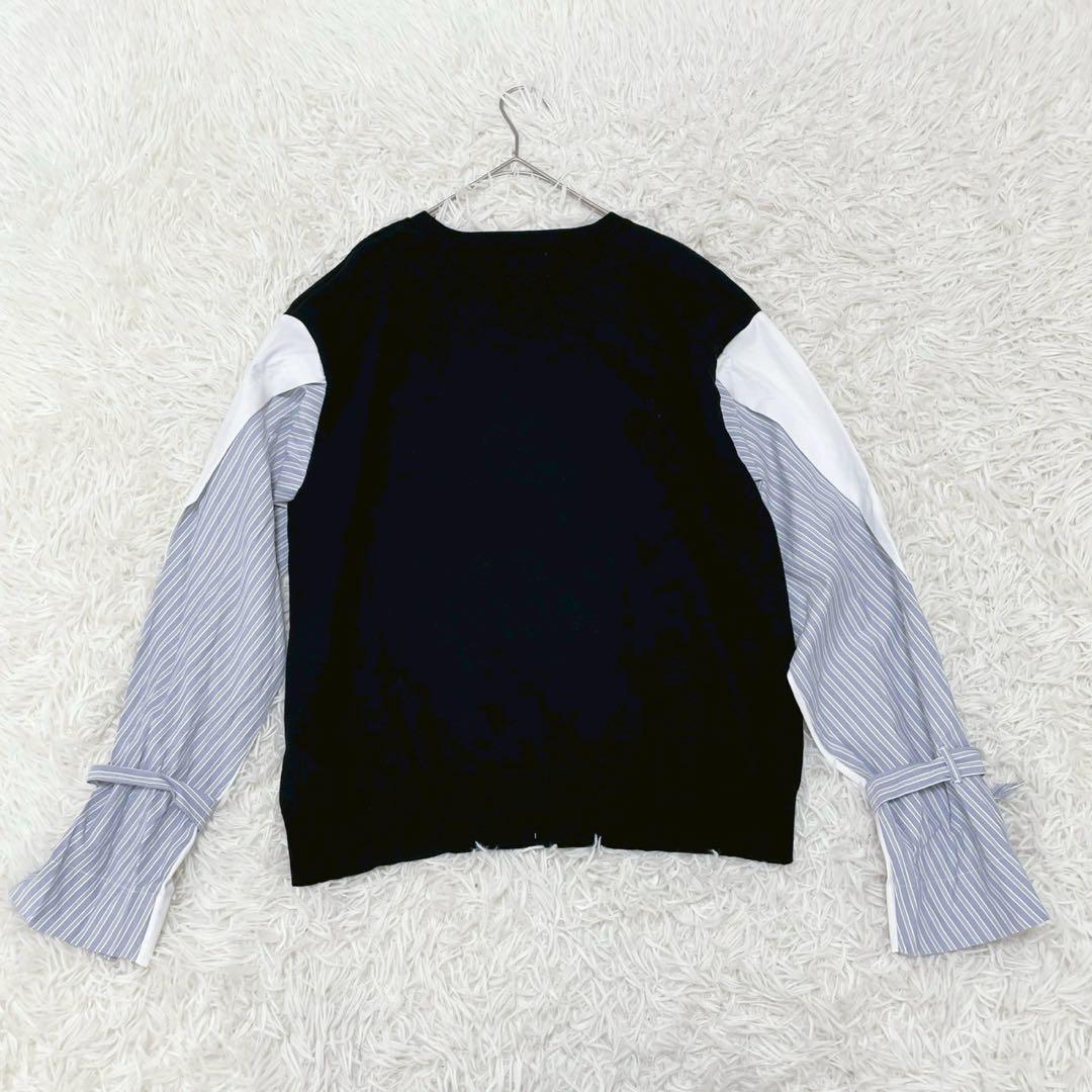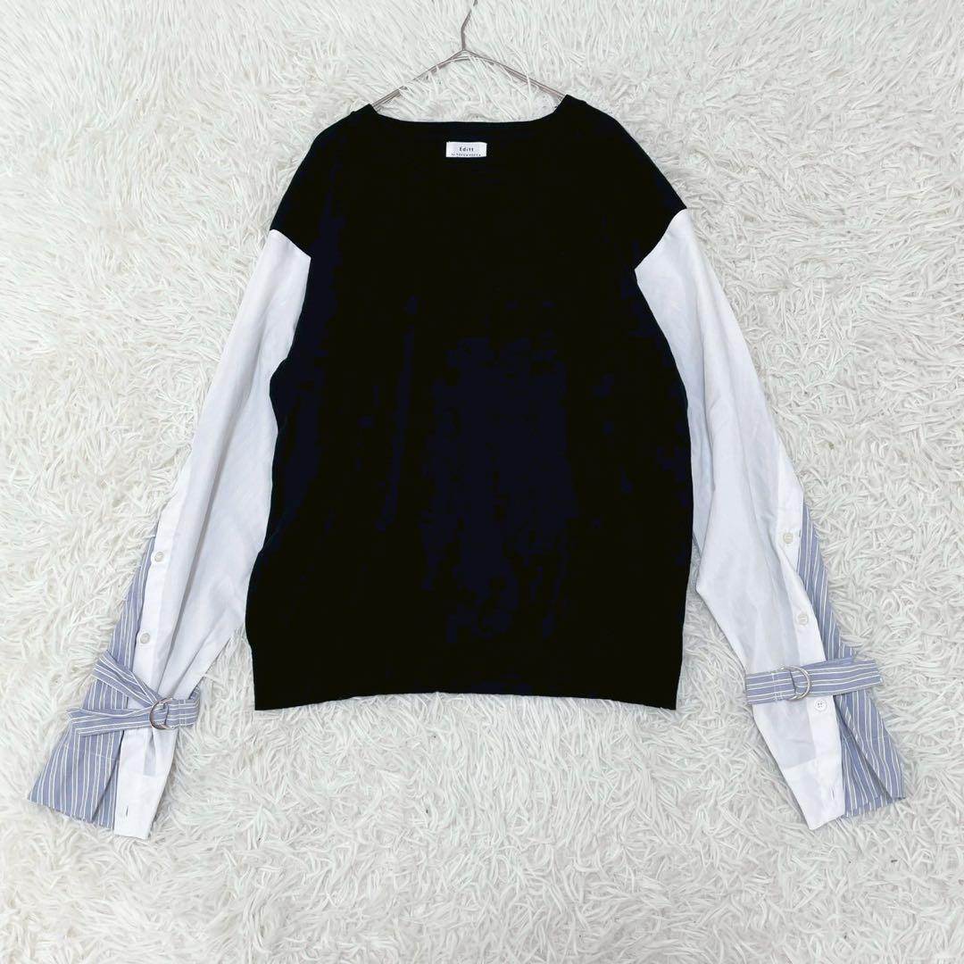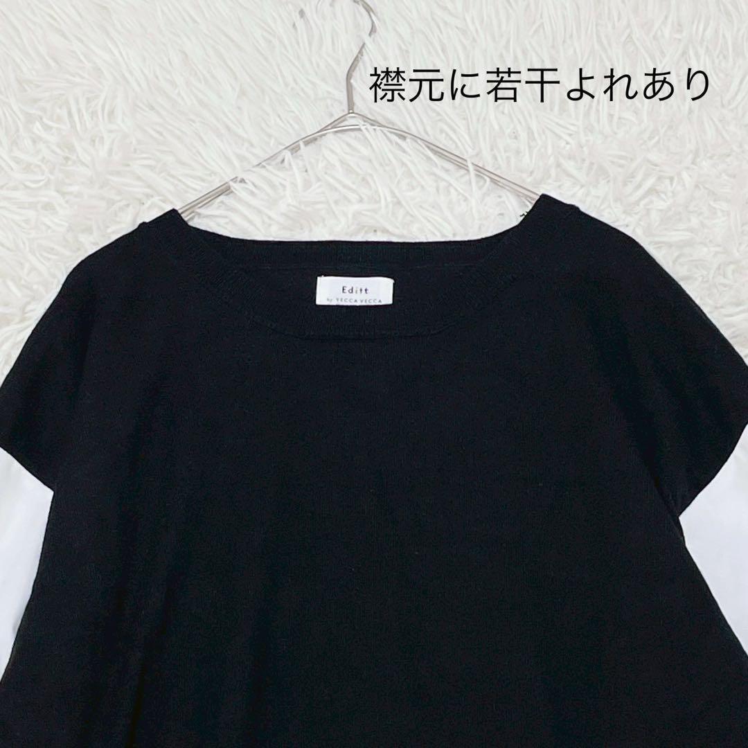 エディットバイイェッカヴェッカ (F) 袖切り替えデザインニット シャツ袖 黒