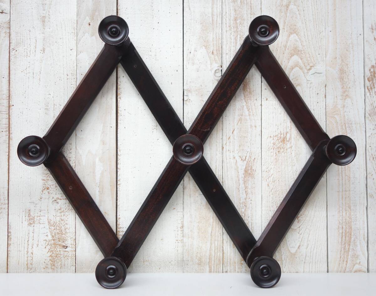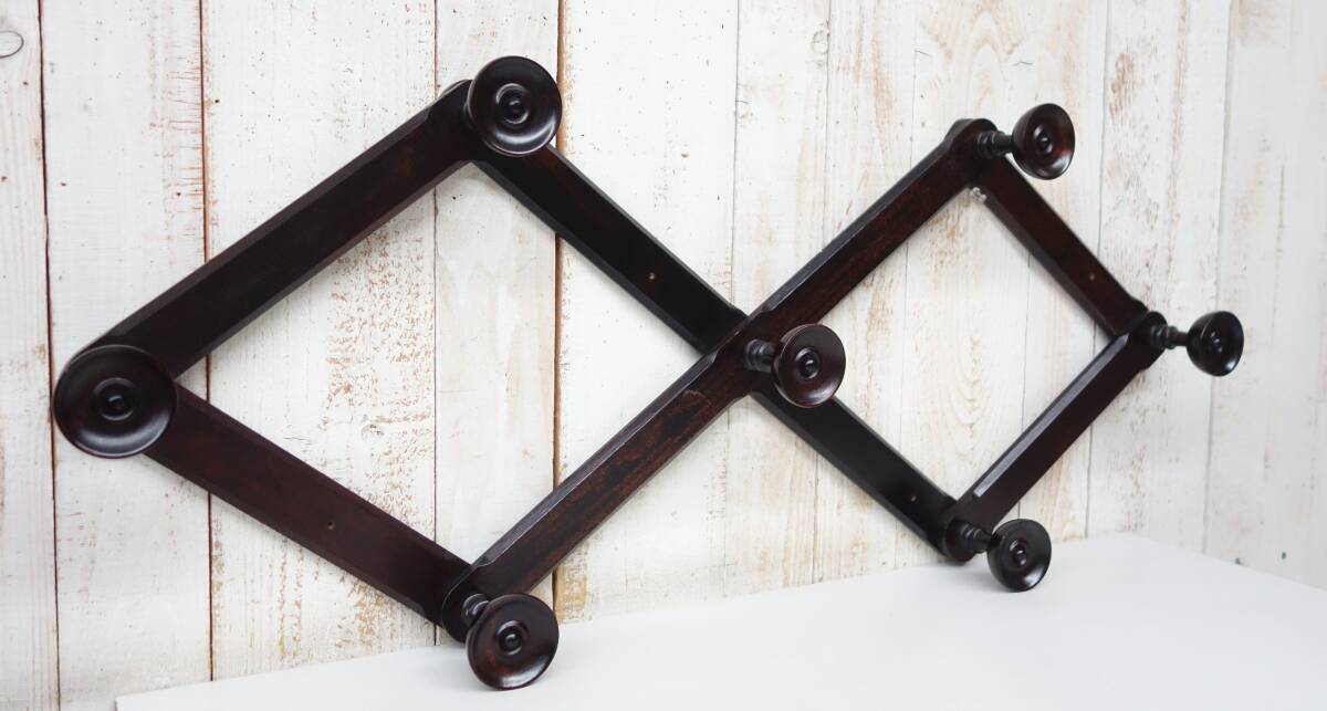 *レトロインテリア 当時物 *ジャパニーズモダン *MATSUMOTO 松本民芸家具 *ウォールラック ハンガーラック 帽子掛け コート掛け *ミズメサクラ? *伸縮式 レイアウトフリー *伝統工芸 工芸美術 老舗 |