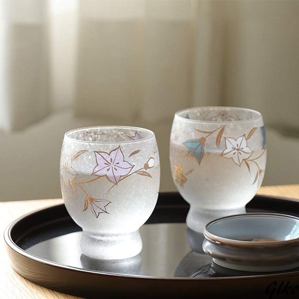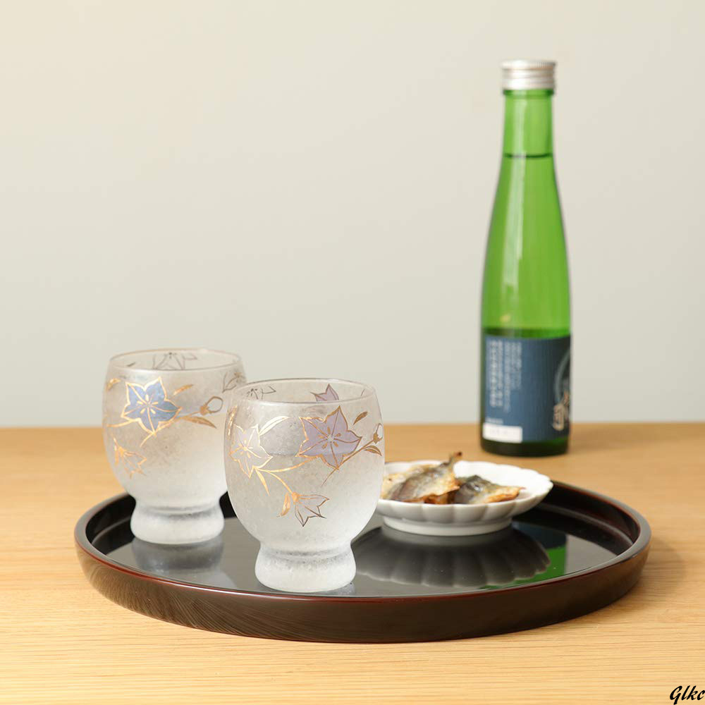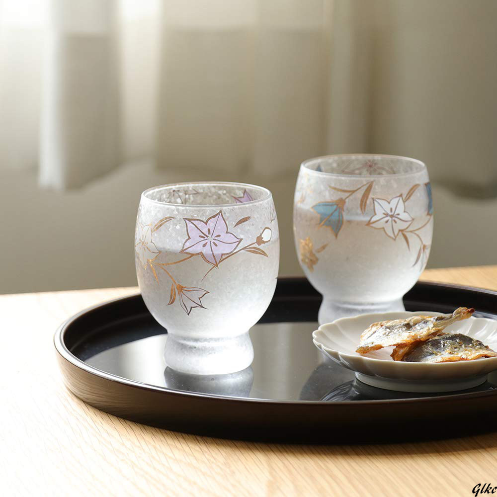 花々が織りなす四季の美しさをガラスで表現した、日本製の日本酒グラスペアセットです。