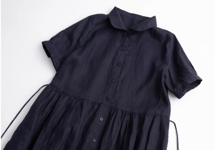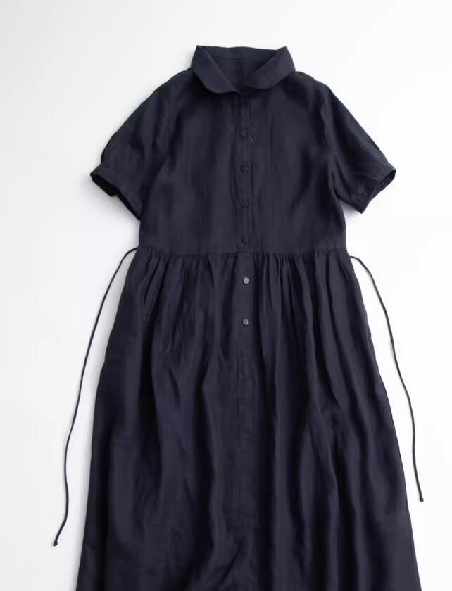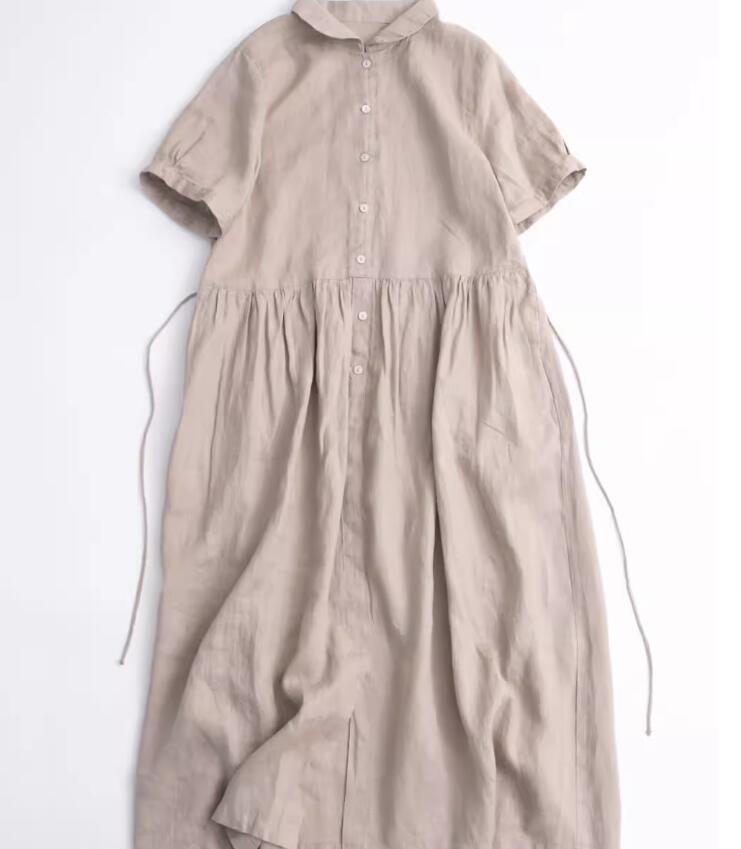 新入荷新品ロングワンピース 綿麻ワンピース シャツワンピース ワンピース レディース 夏 リネン 半袖 ゆったり ロング丈 麻色