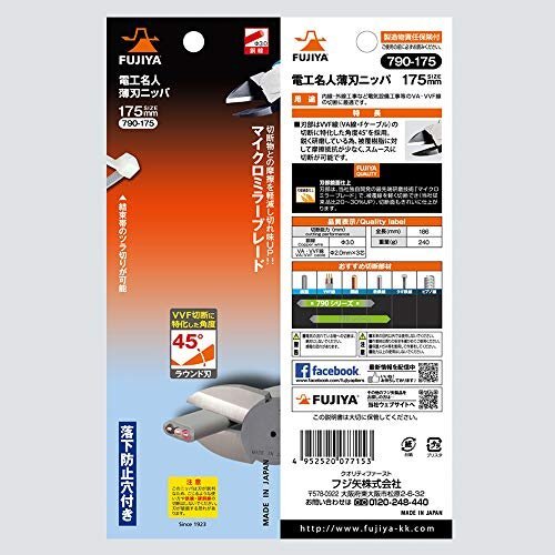 即決価格★ 電工名人薄刃ニッパ 175㎜ 790-175 フジ矢