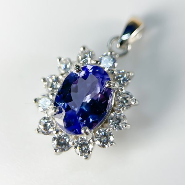 タンザナイト オーバル SV925 シルバー ペンダント トップ 1ct 天然石 キュービックジルコニア カジュアルジュエリー ギフト プレゼント 12月誕生石 ブルー パープル 青紫 光変色 新品 手作り ハンドメイド