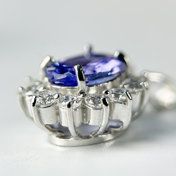 透き通る青紫が幻想的なタンザナイト(天然・1.0ct)を主石に、輝きのアクセントとしてキュービックジルコニアを添えたSV925(シルバー)製ペンダントトップ。