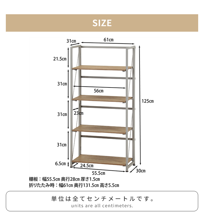 | パタッと折りたためる! 4段オープンシェルフ。 |