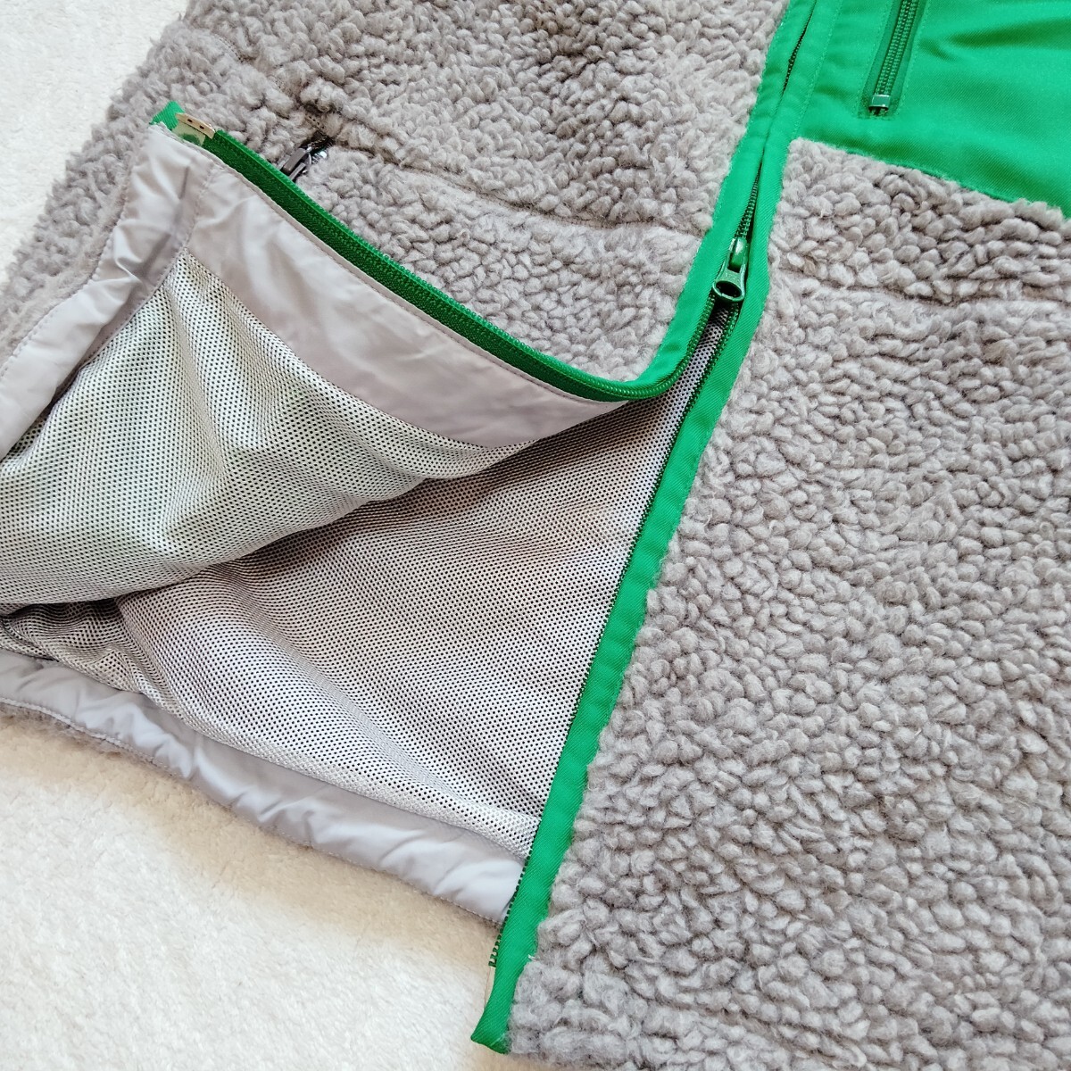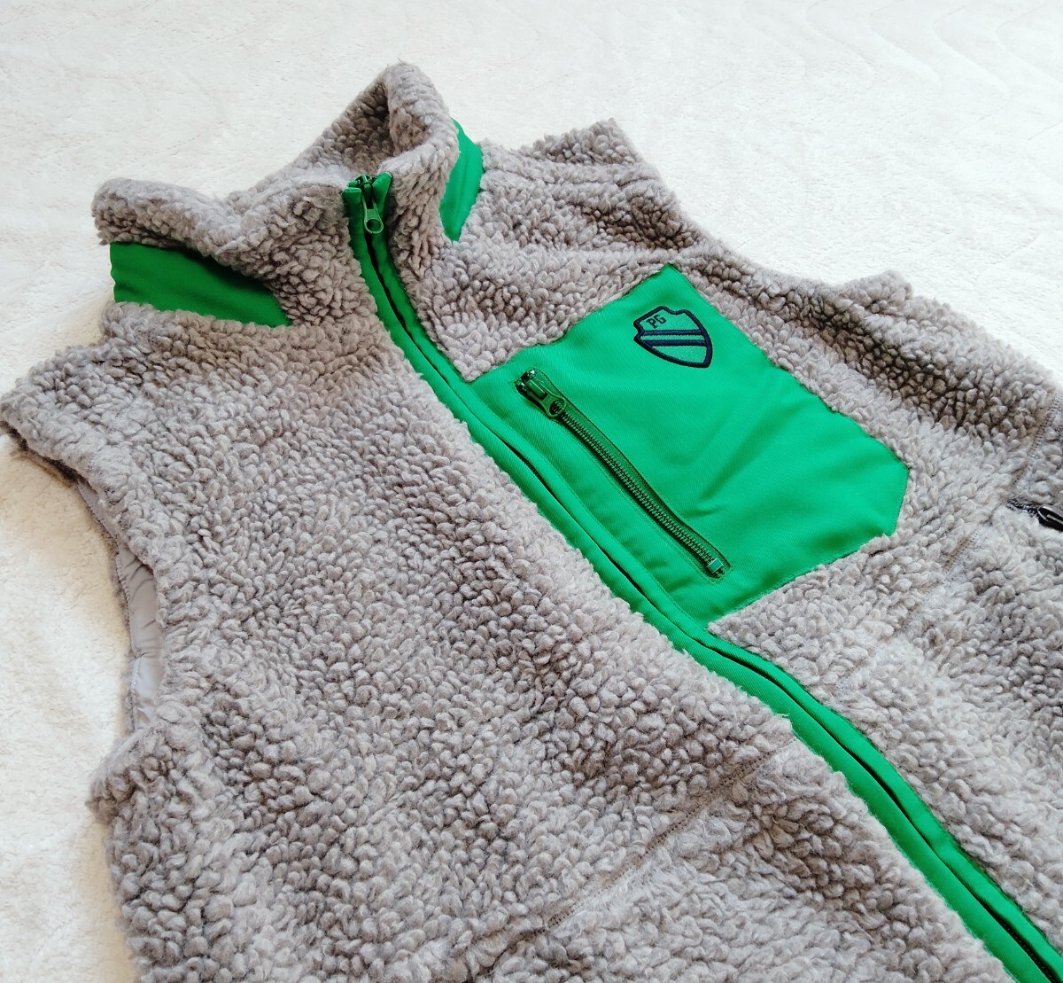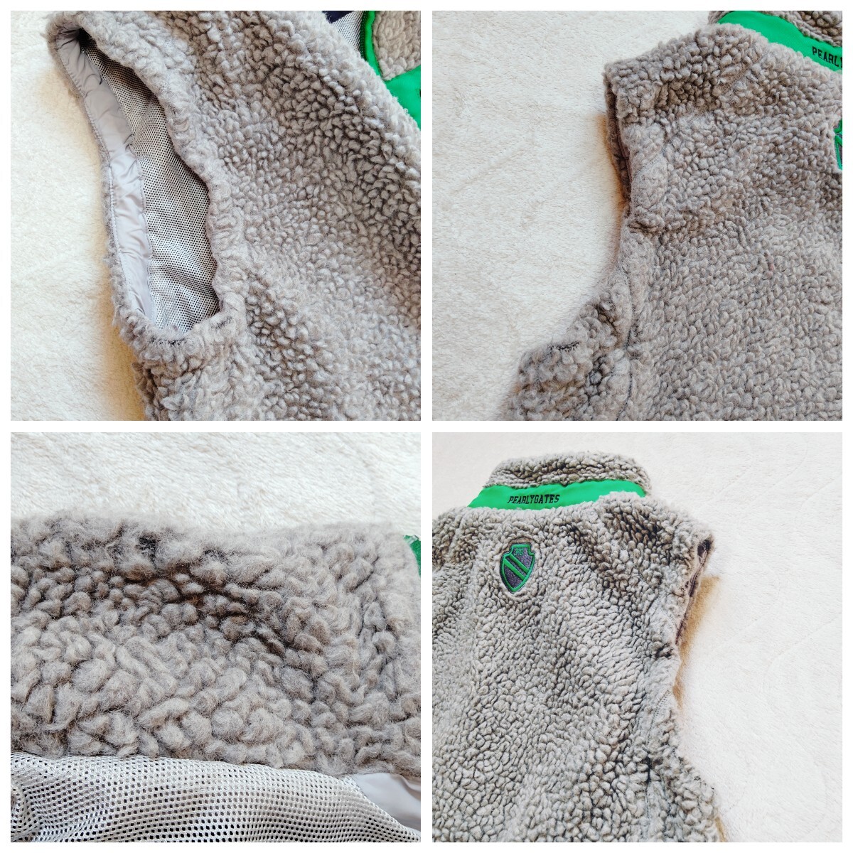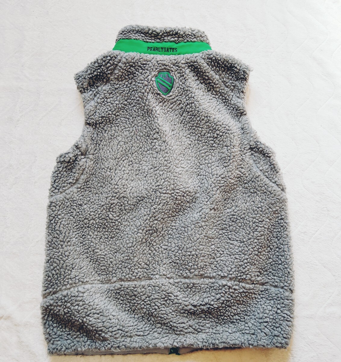 PEARLY GATES パーリーゲイツ*フリースベスト*大きいサイズ5*グレー×グリーン*モコモコボア*ジップアップ*ゴルフウェア*