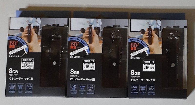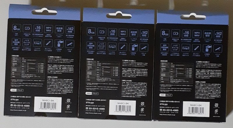 6342 ICレコーダー MA8CI-BK 3個セット 内蔵メモリ8GB マイク型 充電式 高音質録音リニアPCM(WAV) ノイズキャンセリング ワイドFM STAYER