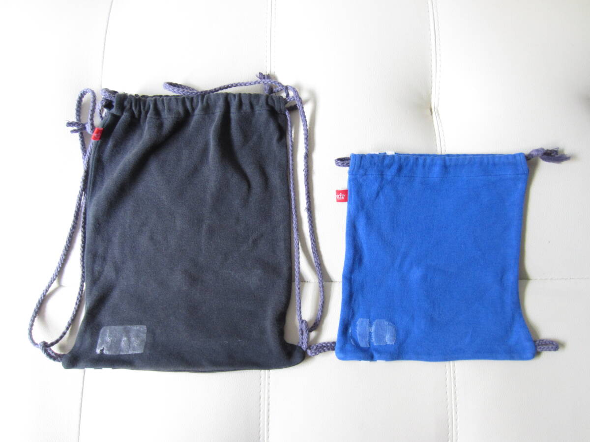 やわらかいコットン製の「BABY DOLL ベイビードール」きんちゃく(ブラック、ブルー)。