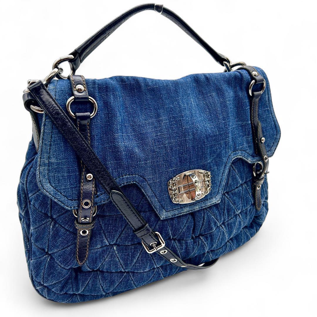 【モデル】現行 マトラッセ 2way クリスタル デニム ショルダーバッグ ハンドバッグ トートバッグ 肩掛け キルティング レザー