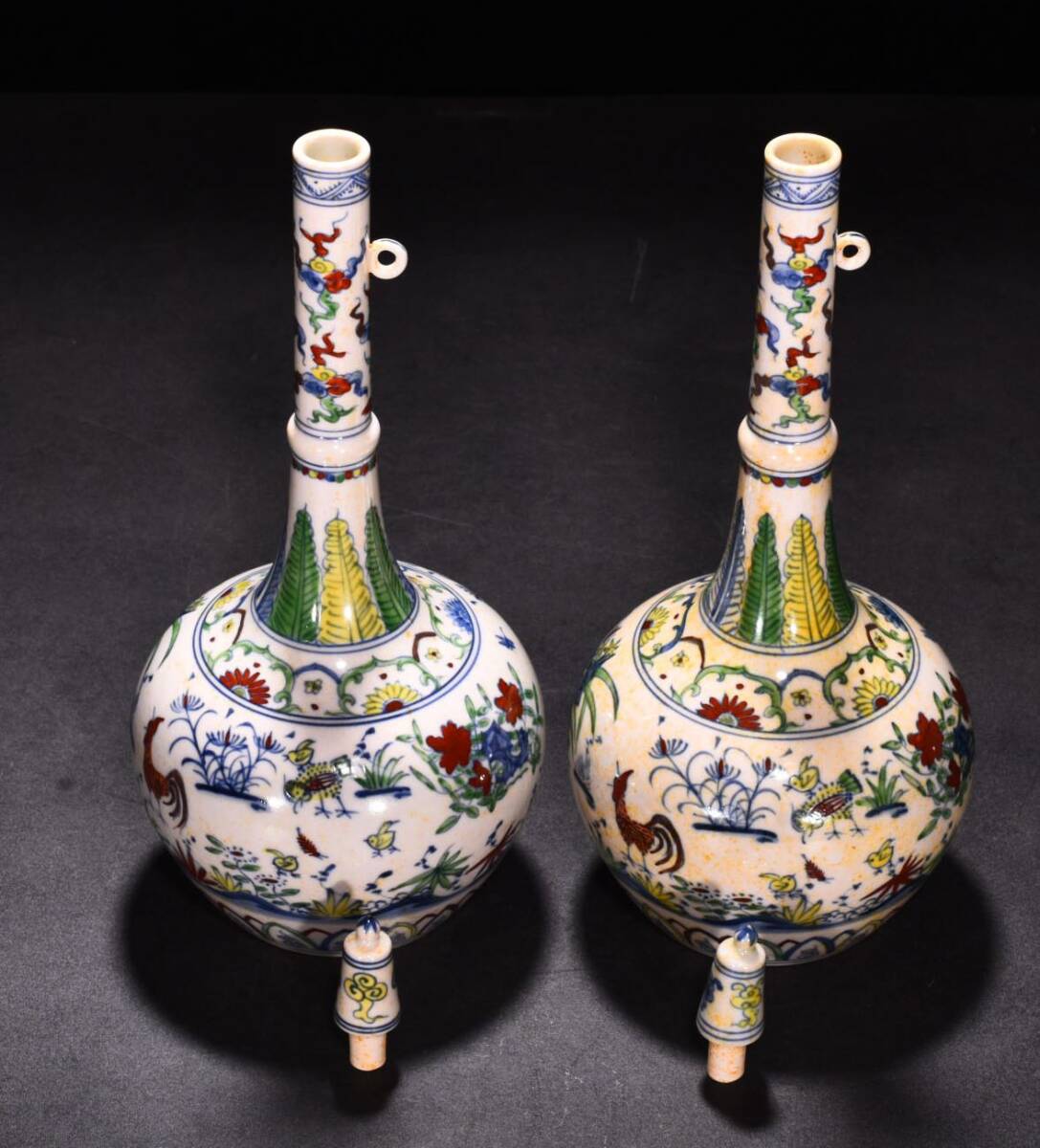 商品名 ■BD154■大明成化年制款 紅胎 闘彩 紅龍紋匙胆瓶一対 古陶磁器 古玩旧蔵 時代物■