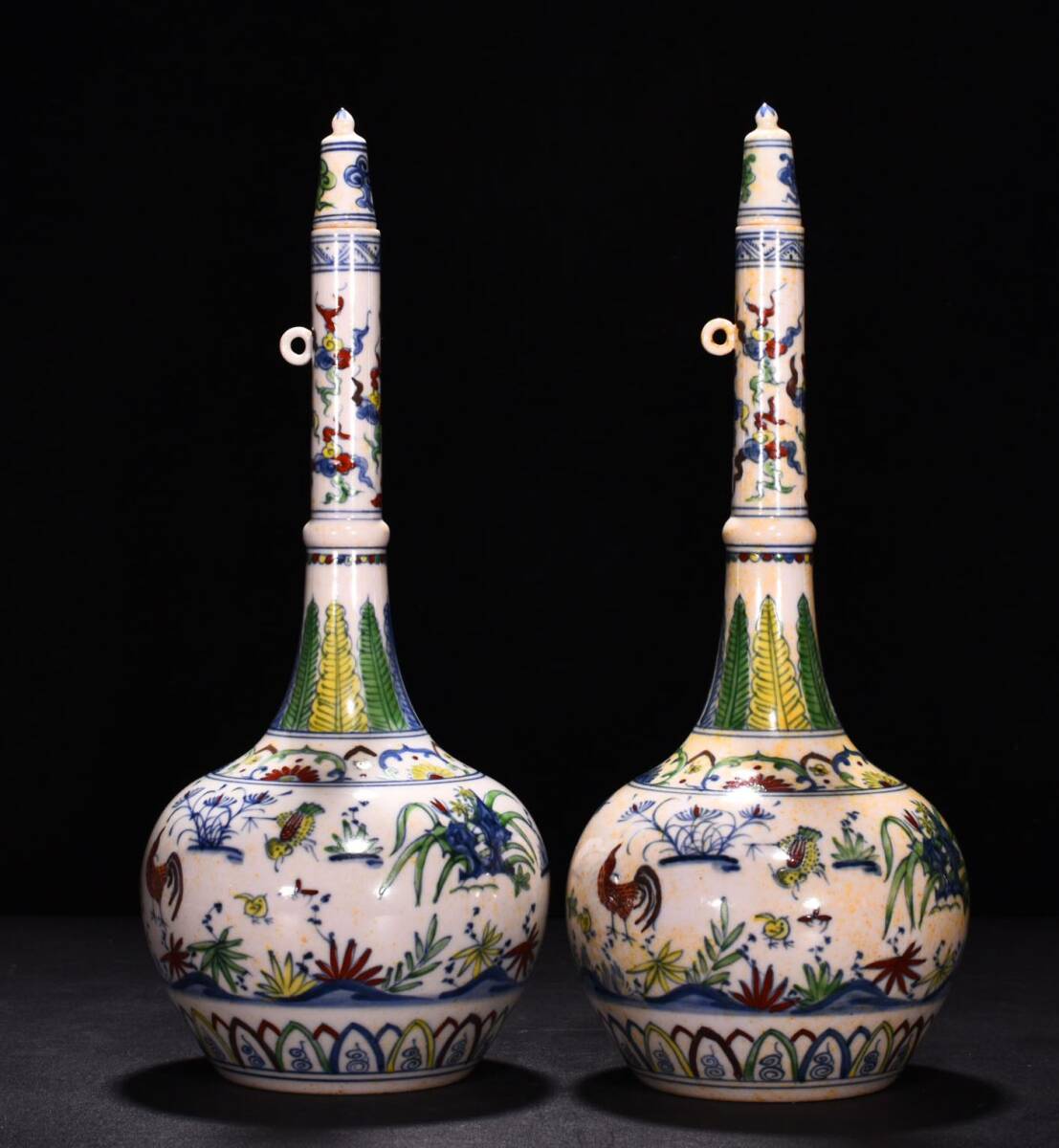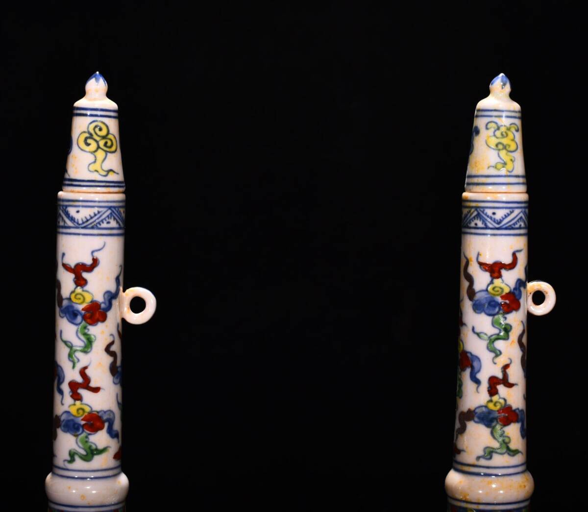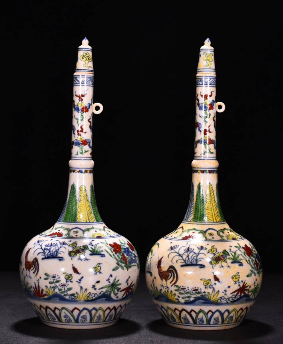 ■BD154■大明成化年制款 紅胎 闘彩 紅龍紋匙胆瓶一対 古陶磁器 古玩旧蔵 時代物■