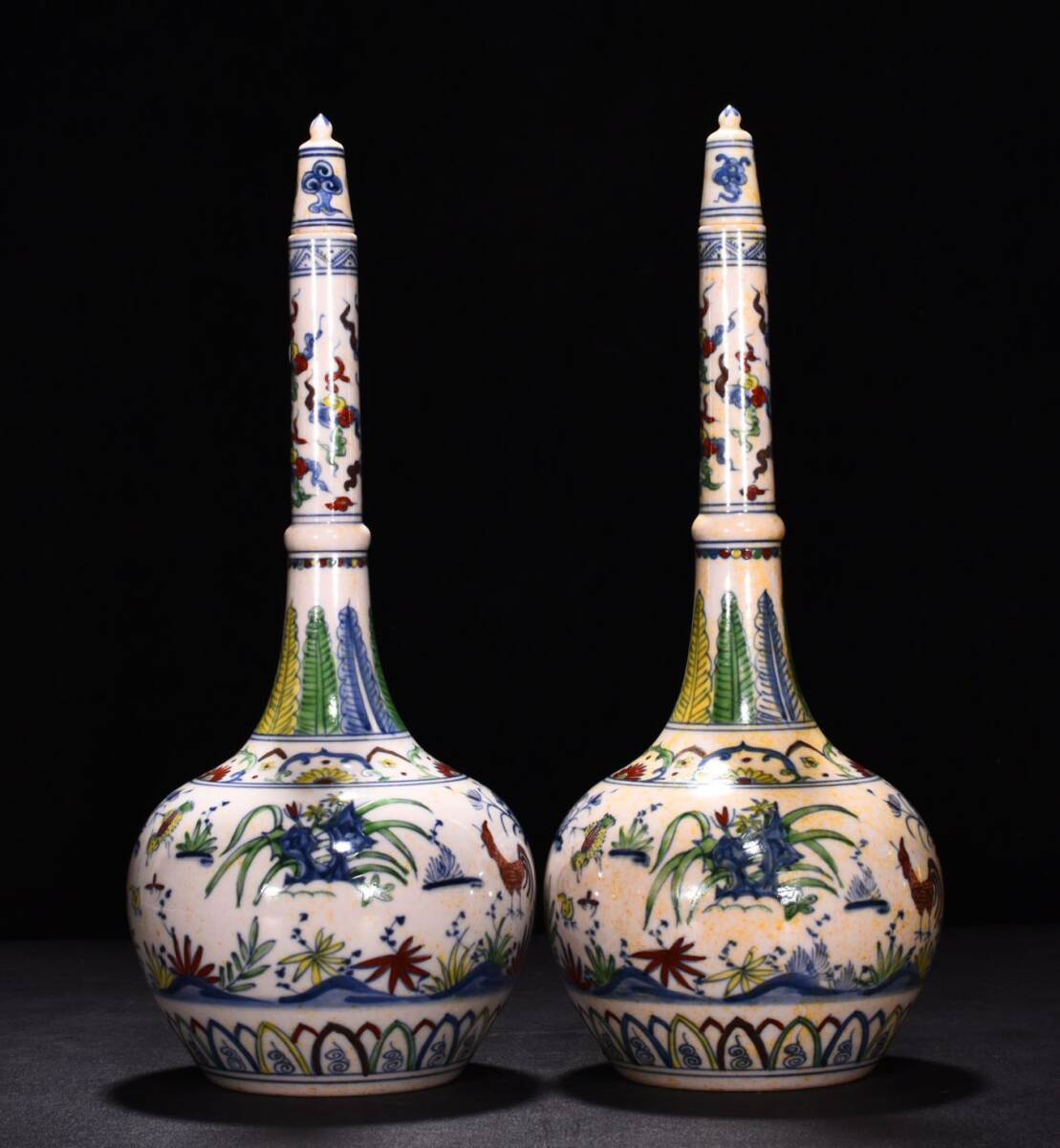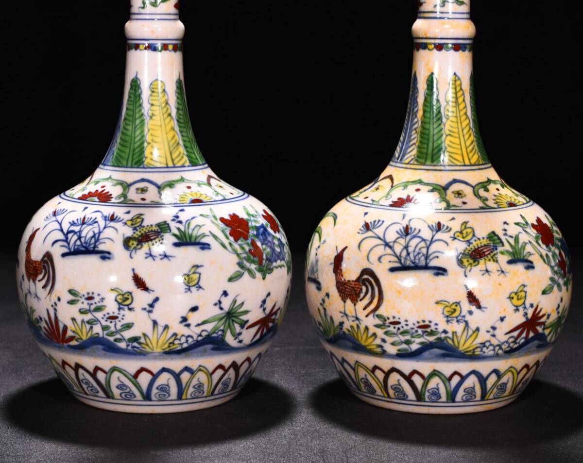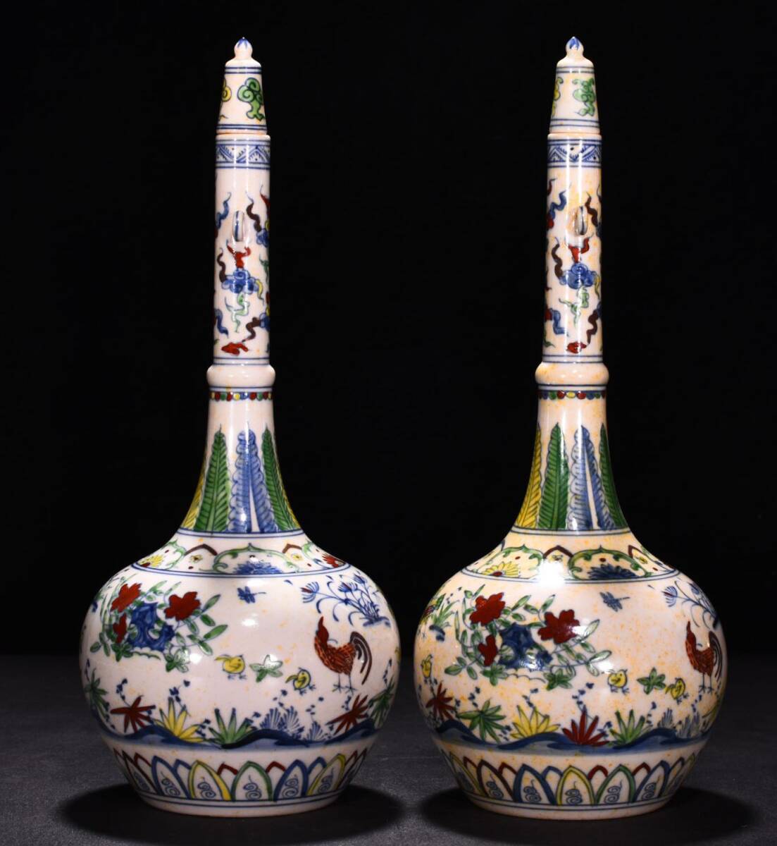 ■BD154■大明成化年制款 紅胎 闘彩 紅龍紋匙胆瓶一対 古陶磁器 古玩旧蔵 時代物■