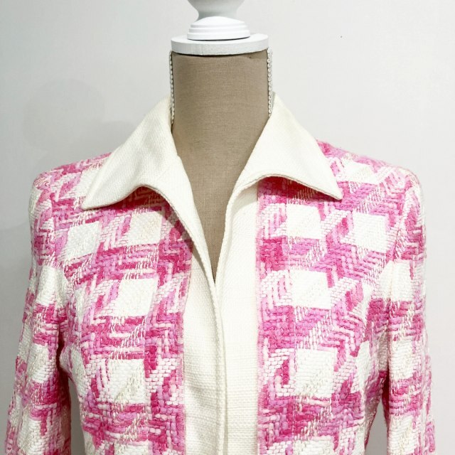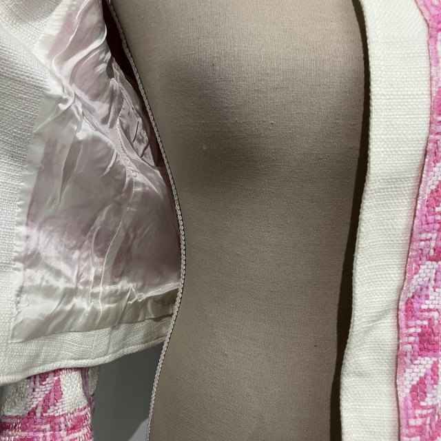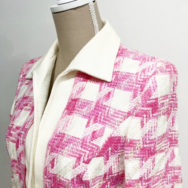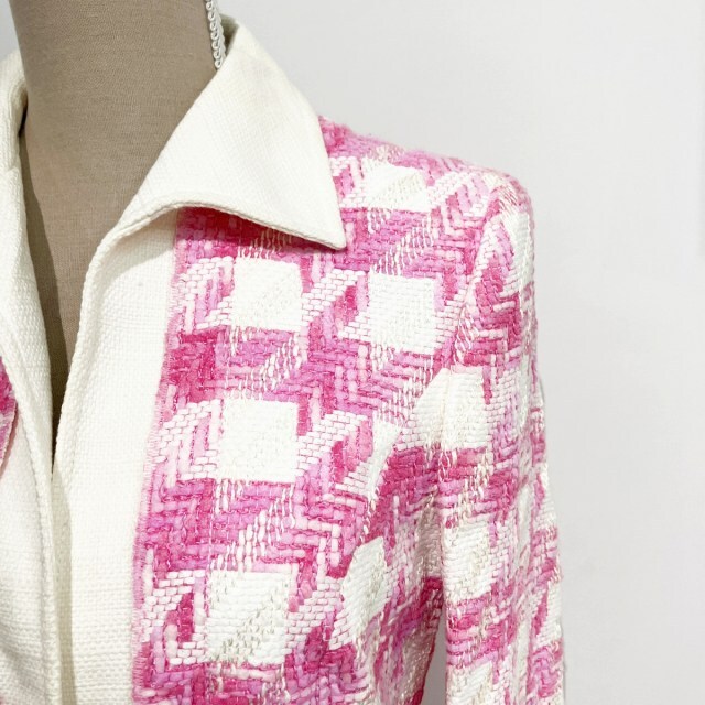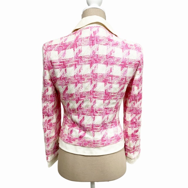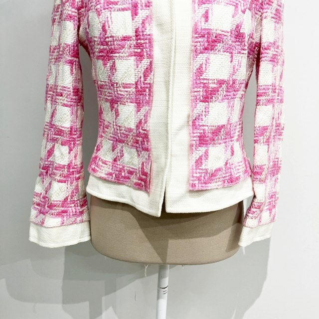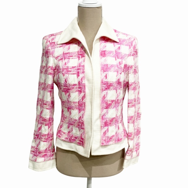 エスカーダ ESCADA ジャケット チェック ツイード 白 ホワイト ピンク 36 約S ■WY レディース
